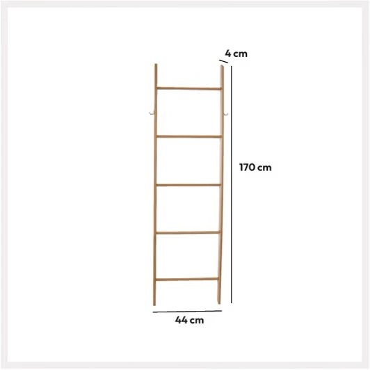Bambusowy wieszak łazienkowy na ręczniki 5-poziomowy marki Atmosphera to stylowa i praktyczna drabinka do łazienki, która zachwyca naturalnym wyglądem oraz funkcjonalnością. Wykonany z trwałego drewna bambusowego, oferuje aż pięć poziomów na odwieszenie ręczników lub tekstyliów, a jego smukła forma (170 cm wysokości, 44 cm szerokości) pozwala maksymalnie wykorzystać przestrzeń nawet w niewielkiej łazience. To idealny wybór dla miłośników stylu boho oraz osób ceniących ekologiczne rozwiązania.