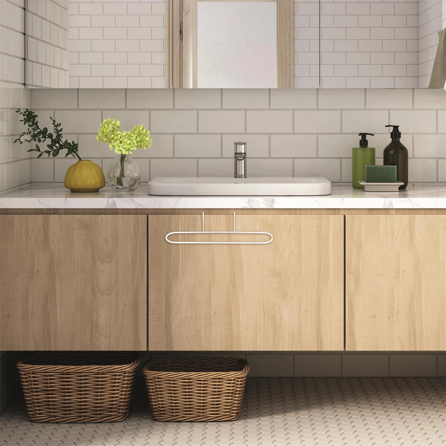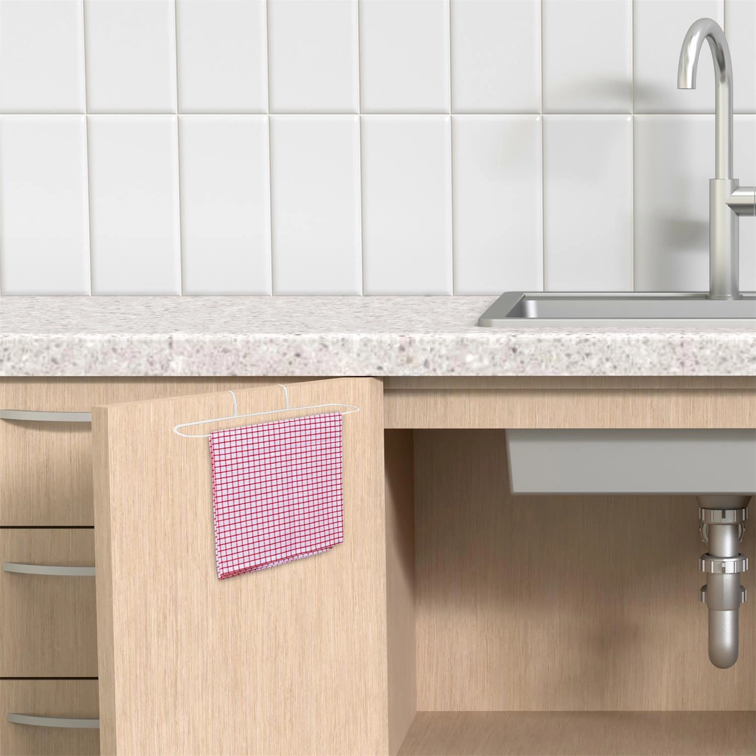 Choć idealny jako wieszak na ręczniki kuchenne, sprawdzi się także w łazience – możesz użyć go do zawieszenia ręczników do rąk, ściereczek czy innych drobnych tekstyliów. Uniwersalna forma pozwala wykorzystać go wszędzie tam, gdzie liczy się szybki dostęp do czystych ręczników i wygoda użytkowania.