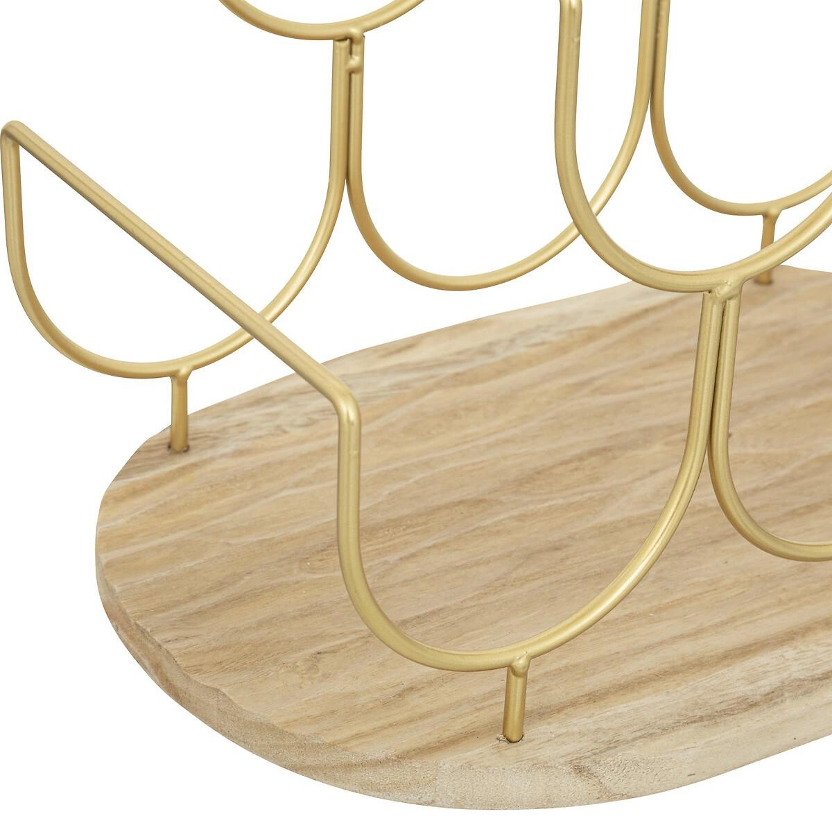 Stojak na butelki Rivi złoty to nie tylko praktyczne rozwiązanie do przechowywania i wyeksponowania Twojej kolekcji win, ale również elegancki dodatek do wystroju wnętrza. Dzięki swojemu wyjątkowemu designowi, stojak Rivi jest w stanie pomieścić aż 6 wspaniałych roczników, które chcesz wyeksponować. Owalna podstawa stojaka wykonana jest z rzeźbionego drewna paulownia, które dodaje mu naturalnego uroku i ciepła. Drewno to jest nie tylko trwałe, ale również przyjemne w dotyku, co sprawia, że stojak Rivi staje się nie tylko praktycznym, ale również estetycznym elementem Twojego wnętrza.