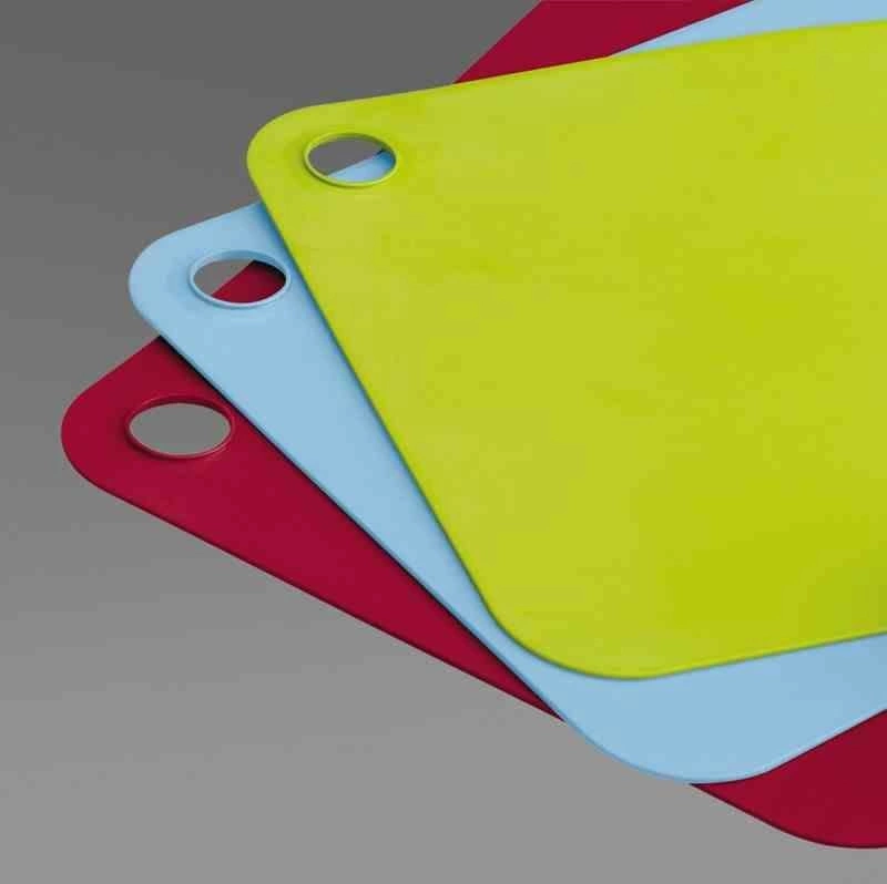Zestaw Joseph Joseph POP został zaprojektowany z myślą o maksymalnej wygodzie. Elastyczne maty można łatwo zginać, co umożliwia sprawne przesypywanie pokrojonych składników bez rozsypywania. Ich niewielka grubość – zaledwie 0,6 cm – pozwala na wygodne przechowywanie nawet w niewielkiej szufladzie, a praktyczny otwór umożliwia zawieszenie mat na haczyku, dzięki czemu zawsze będą pod ręką.