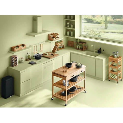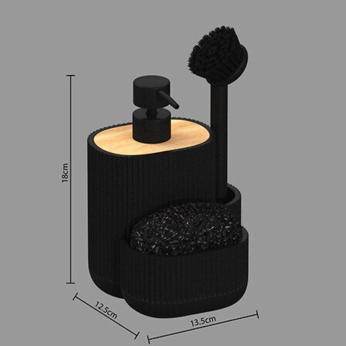 Model Blackwood został zaprojektowany z myślą o maksymalnej funkcjonalności. W zestawie znajduje się nie tylko pojemnik na płyn do naczyń z wygodną pompką, ale również dopasowana gąbka i szczotka do mycia. Dzięki temu najpotrzebniejsze akcesoria masz zawsze pod ręką, a blat pozostaje wolny od bałaganu i zacieków. Praktyczny organizer pozwala szybko sięgnąć po gąbkę lub szczotkę, co znacząco usprawnia codzienne porządki.