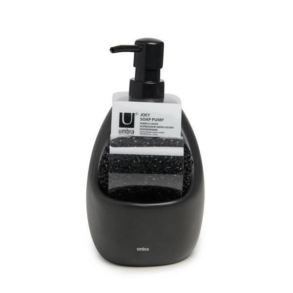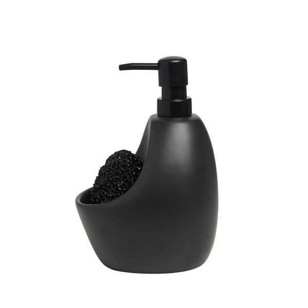 Dozownik na płyn do naczyń i gąbkę Joey Umbra to stylowe i praktyczne rozwiązanie, które pomoże Ci utrzymać porządek przy zlewie. Wykonany z czarnej ceramiki, zachwyca eleganckim wykończeniem i kompaktowymi wymiarami: 20 cm wysokości, 13 cm szerokości oraz 10 cm głębokości. Ten dozownik 2w1 to nie tylko wygodne dozowanie płynu do naczyń, ale także sprytna przegródka na gąbkę – wszystko po to, by każdy element niezbędny do mycia naczyń był zawsze pod ręką.