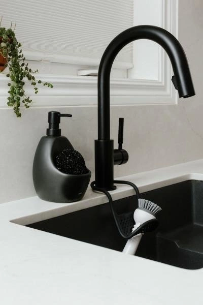 Marzysz o kuchni, w której panuje ład, a codzienne czynności stają się łatwiejsze? Czarny ceramiczny dozownik na płyn do naczyń Joey Umbra to praktyczny organizer, który zrewolucjonizuje Twoją przestrzeń przy zlewie. Specjalnie zaprojektowana przegroda umożliwia higieniczne przechowywanie gąbki, eliminując chaos i wilgoć, a zintegrowana pompka pozwala na precyzyjne dozowanie detergentu. To rozwiązanie, które usprawnia każdy etap zmywania, jednocześnie dbając o estetykę kuchni.