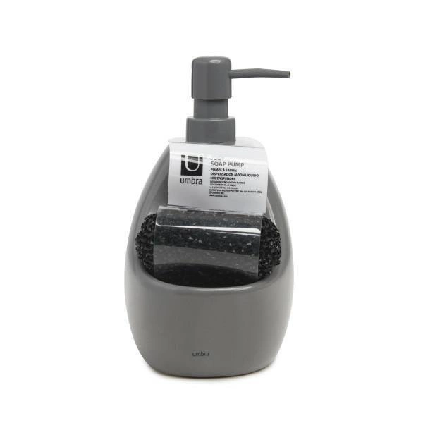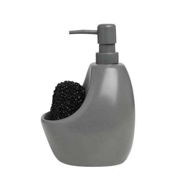 Dozownik na płyn do naczyń i gąbkę Joey Umbra to praktyczne i stylowe rozwiązanie do każdej kuchni. Wykonany z trwałej, jasnoszarej ceramiki, łączy pojemnik na płyn do naczyń z miejscem na gąbkę, zapewniając wygodę i porządek przy zlewie. Kompaktowe wymiary – wysokość 20 cm, szerokość 13 cm i głębokość 10 cm – pozwalają na ustawienie dozownika nawet na niewielkich blatach kuchennych.