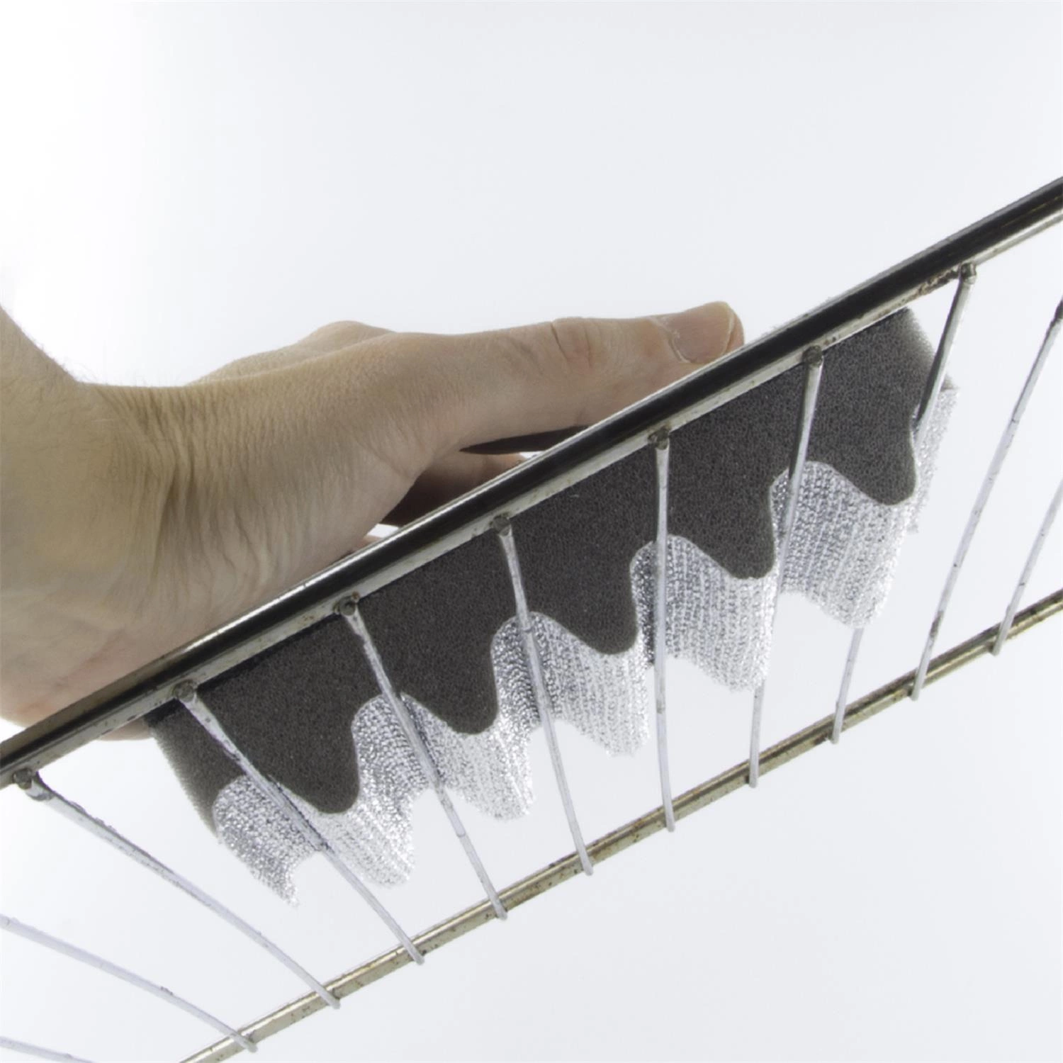 - Posiada dwie strony o różnej teksturze - pofalowaną do czyszczenia rusztu i miękką do delikatniejszych powierzchni.
