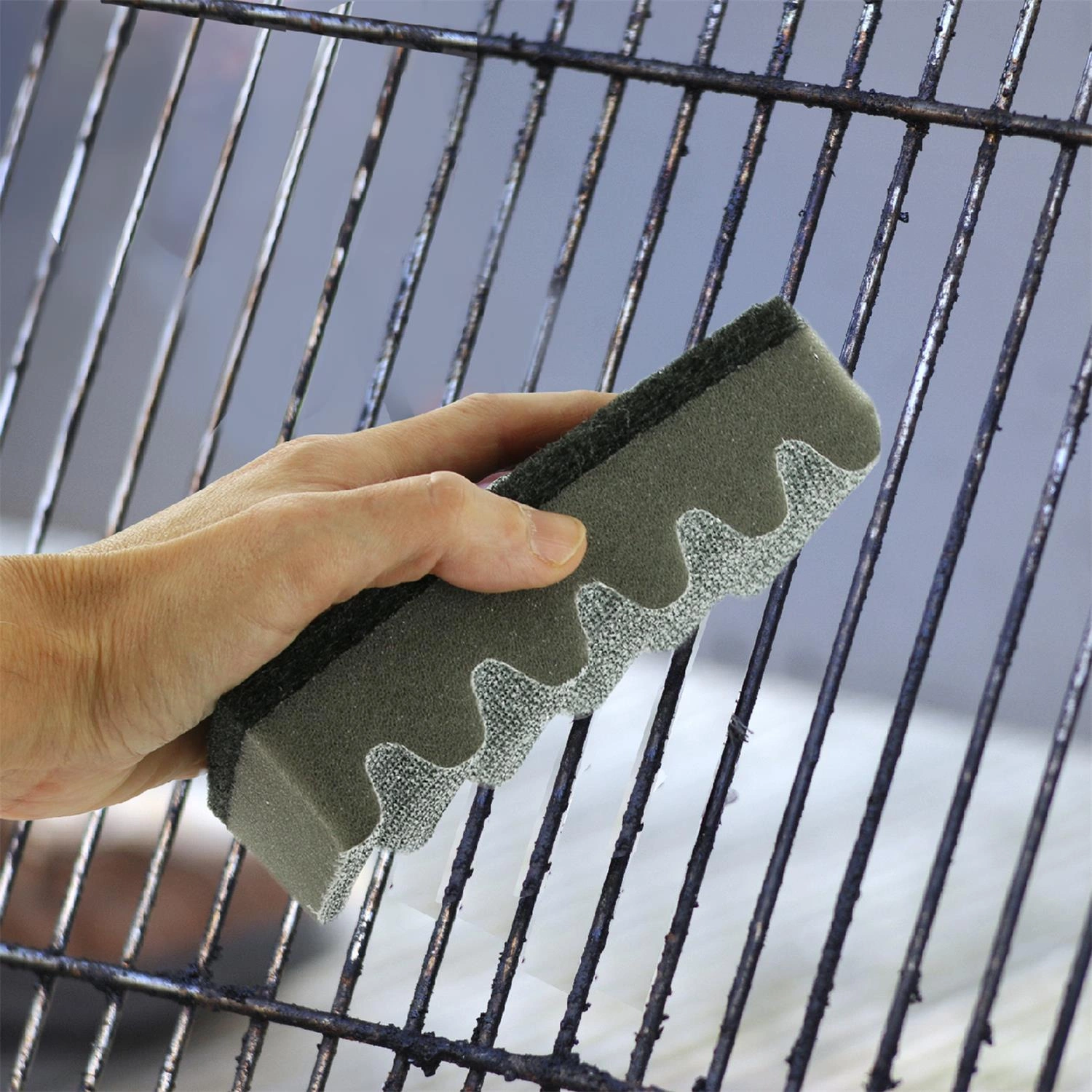 Szara gąbka do czyszczenia rusztu - praktyczność i styl w jednym