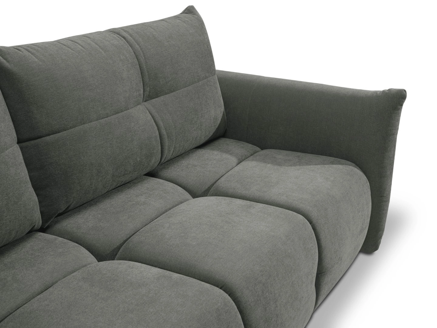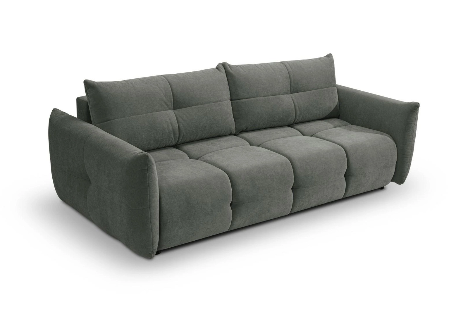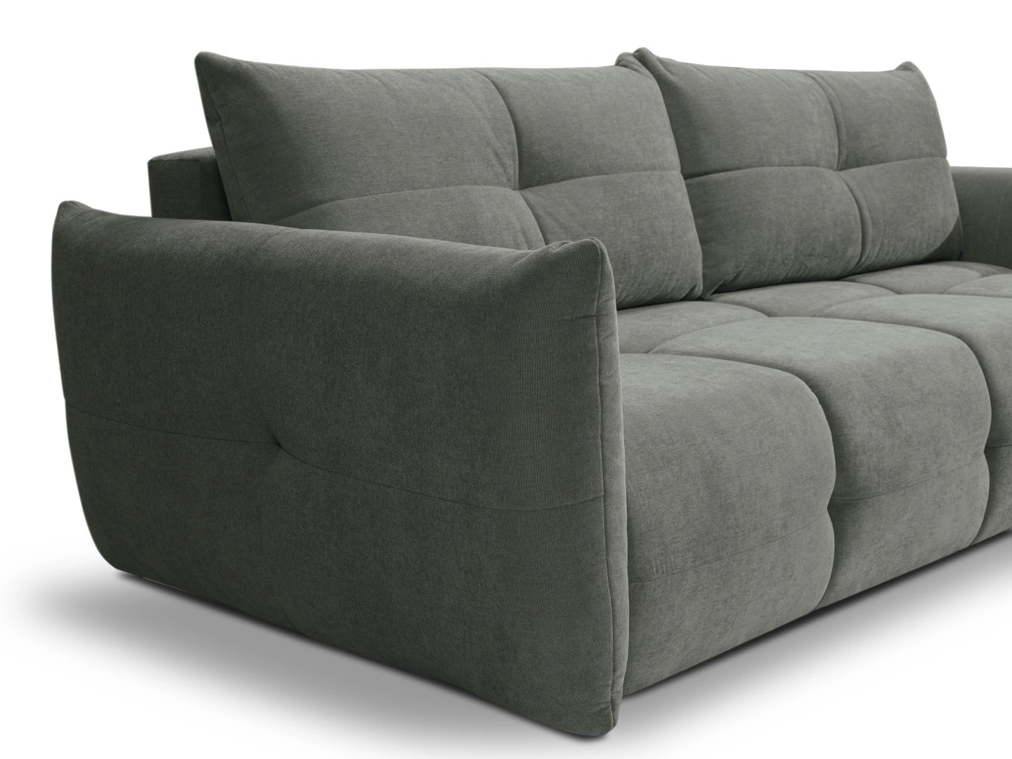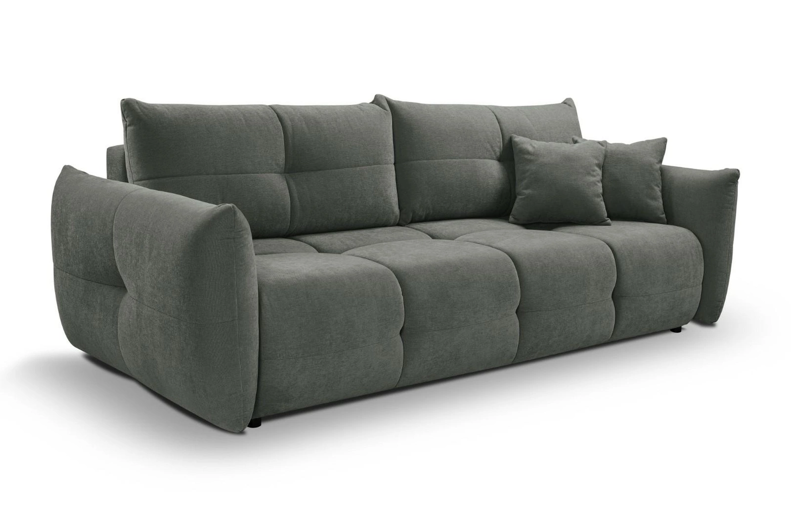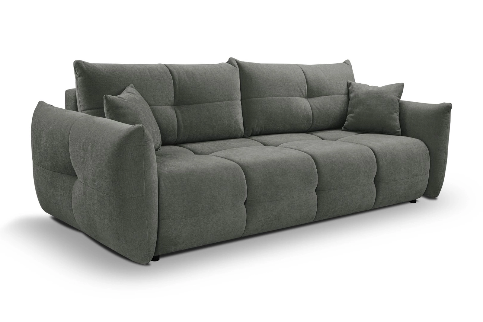 Sofa Bode to ponadczasowa, komfortowa i zjawiskowa sofa, która uczyni Twoje mieszkanie przytulnym i nowoczesnym, a Tobie zagwarantuje eygodę podczas codziennego użytkowania. Duże, miękkie poduchy oparciowe, wygodne siedzisko i charakterystyczne mięsiste i pikowane podłokietniki, a wszystko to wzbogacone ciekawymi przeszyciami i pikowaniem. Dopełnienie sofy stanowią dwie małe, ozdobne poduszki, które będą idealnym wsparciem pod głowe podczas popołudniowej drzemki.