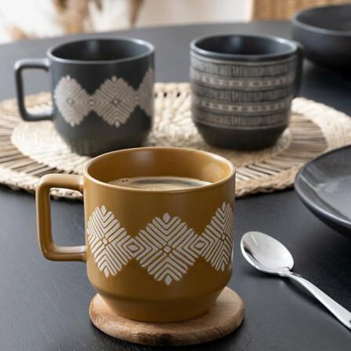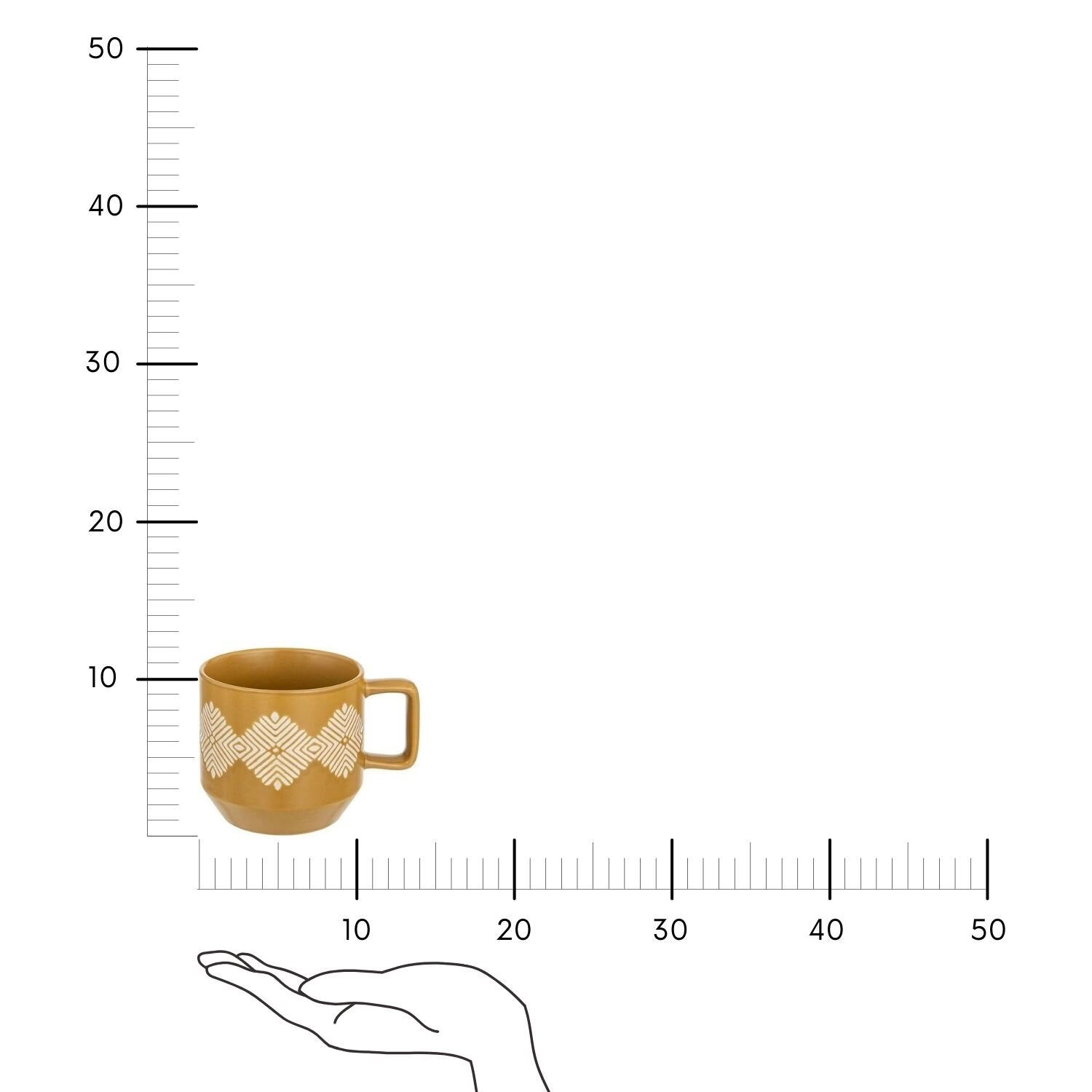 Prezentowany kubek Mosquito to połączenie elegancji i funkcjonalności. Wykonany z kamionki, cechuje się nowoczesnym designem, który idealnie wpasuje się w każde wnętrze. Geometryczny wzór nadaje mu unikalnego charakteru, a żółty kolor dodaje mu oryginalności. Kubek o pojemności 380 ml jest idealny do serwowania ulubionych napojów - od porannej kawy, przez herbatę, po wieczorne kakao.