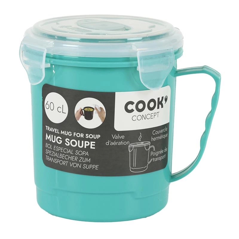 Intesi kubek na zupę 630 ml to praktyczny lunchbox w kolorze niebieskim, zaprojektowany z myślą o wygodnym przechowywaniu i podgrzewaniu gorących dań. Wykonany z trwałego tworzywa sztucznego, o pojemności 630 ml i ergonomicznych wymiarach (wysokość 12,5 cm, szerokość 13,3 cm, głębokość 10,5 cm), doskonale sprawdzi się jako pojemnik na lunch do pracy lub szkoły. Jego okrągły kształt ułatwia mieszanie dań, a szczelna konstrukcja chroni przed przypadkowym rozlaniem.