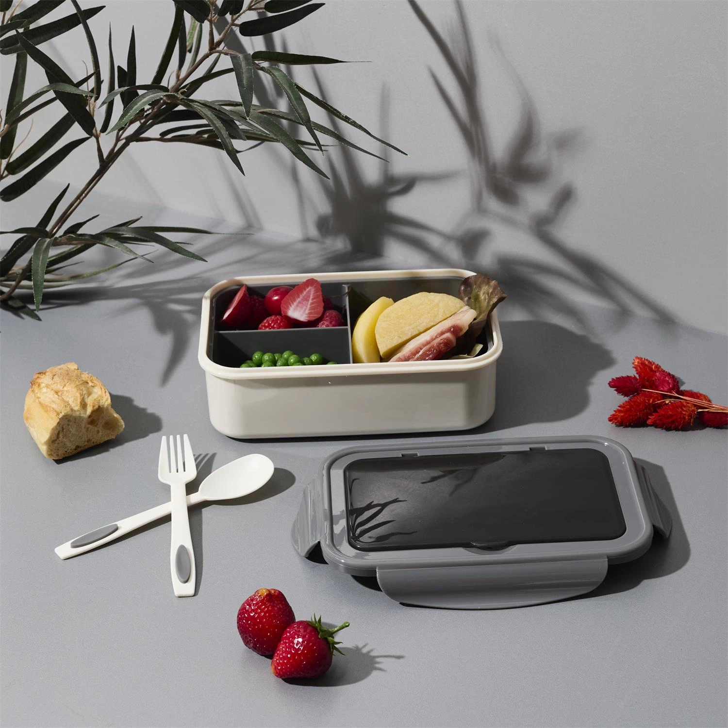 Minimalistyczny, szary kolor oraz nowoczesny styl lunchboxa doskonale wpisują się w aktualne trendy. Polipropylenowa konstrukcja gwarantuje lekkość i wytrzymałość, a także odporność na codzienne użytkowanie. Pojemnik można bezpiecznie podgrzewać w mikrofalówce oraz myć w zmywarce, co znacznie ułatwia utrzymanie go w czystości i pozwala zaoszczędzić czas.
