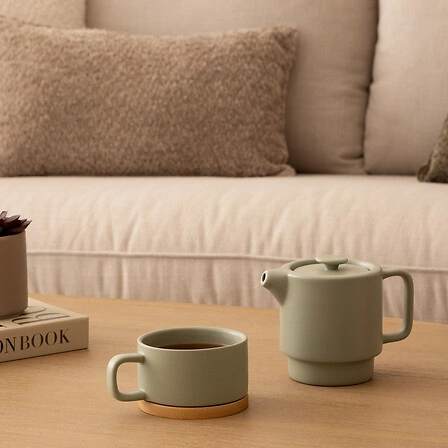 Imbryk ceramiczny Nature marki 5five simply smart to stylowe i praktyczne naczynie do parzenia herbaty, które wyróżnia się miętowym odcieniem oraz elegancką bambusową podstawą. Pojemność 400 ml idealnie sprawdzi się podczas kameralnych spotkań lub codziennych chwil relaksu z ulubionym naparem. Wysokiej jakości ceramika zapewnia trwałość i odporność na przebarwienia, a starannie dobrane detale podkreślają nowoczesny charakter produktu.