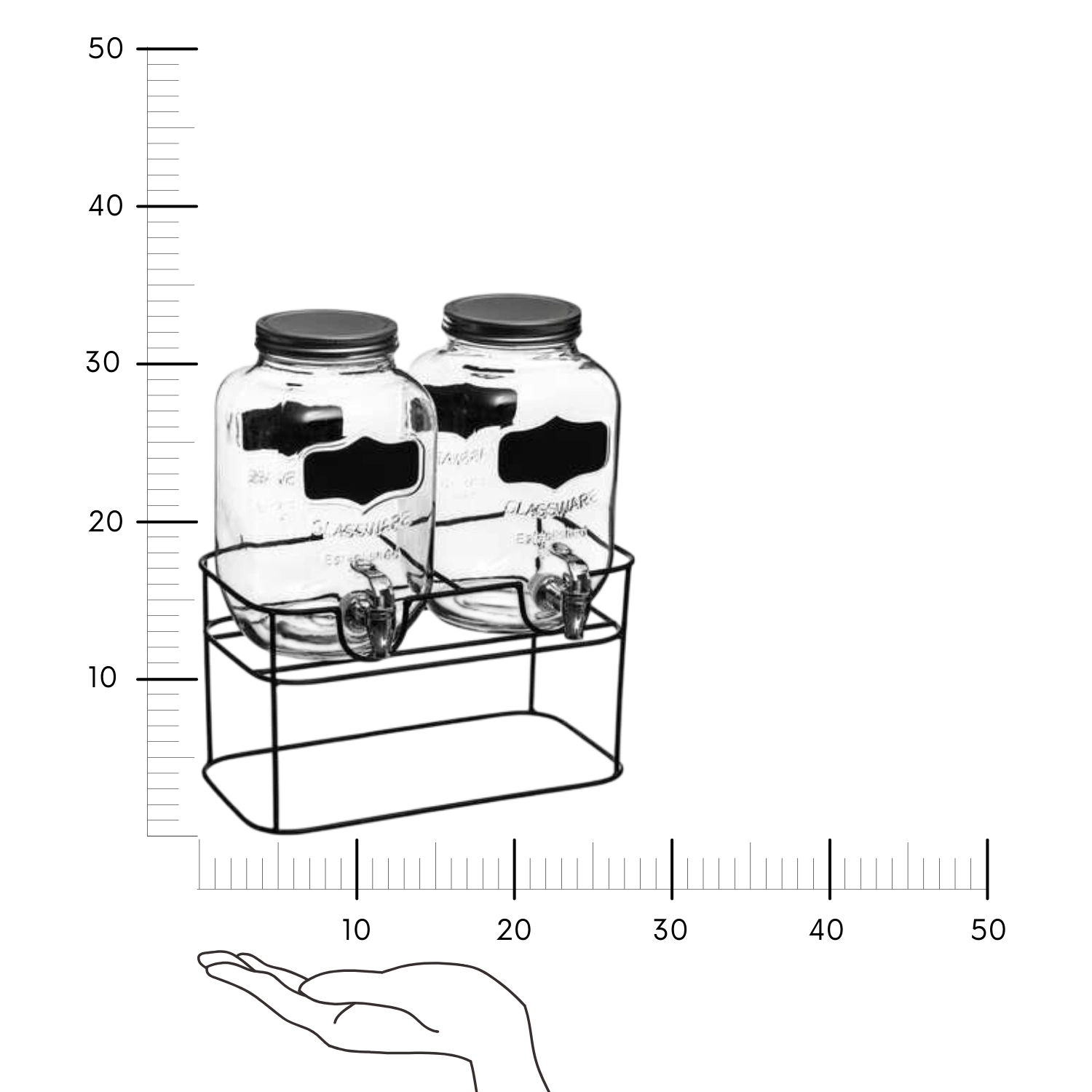 Szukasz praktycznego i stylowego rozwiązania do serwowania napojów na przyjęciach? Zestaw 2 szklanych słoi o pojemności 4 litrów z kranikiem to idealny wybór! Każdy słój jest wyposażony w wygodny kranik, który umożliwia łatwe nalewanie soków, wody z cytryną, lemoniady czy mrożonej kawy. Dzięki zdejmowanej metalowej przykrywce, napełnianie i czyszczenie słoi jest niezwykle proste. Ich elegancki design z metalową przykrywką i podwyższeniem w postaci metalowego stojaka dodaje uroku każdej okazji.