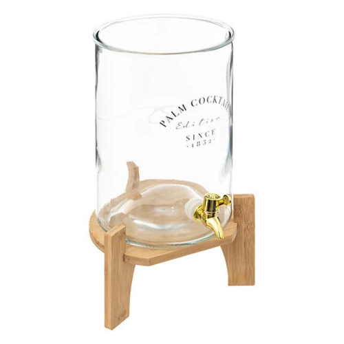 Szklany dyspenser do napojów Botanic Factory 8l marki 5five simply smart to stylowe i praktyczne rozwiązanie, które zamienia każde przyjęcie w niezapomniane wydarzenie. Wykonany z transparentnego szkła oraz wykończony bambusową pokrywką, harmonijnie wpisuje się w trend boho, podkreślając naturalny charakter stołu. Dzięki dużej pojemności 8 litrów, okrągłej formie i solidnej konstrukcji, ten słój z kranikiem staje się nieodzownym elementem spotkań rodzinnych, przyjęć w ogrodzie czy letnich imprez.