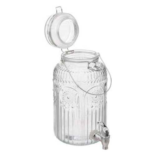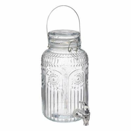 Szklany słój do napojów Mona 3,8 l z kranikiem marki 5five to praktyczny i stylowy dyspenser do serwowania lemoniady, wody lub domowych napojów podczas przyjęć i spotkań rodzinnych. Transparentne szkło oraz wygodny kranik sprawiają, że dozownik jest nie tylko funkcjonalny, ale również efektownie prezentuje się na stole. Słój o pojemności 3,8 litra umożliwia wygodne podawanie ulubionych napojów większej grupie gości.