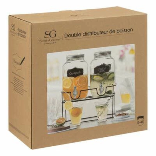 Zestaw 2 szklanych słojów do napojów z kranikiem na stojaku marki 5five simply smart to praktyczne i stylowe rozwiązanie dla osób, które cenią wygodę podczas podawania napojów na przyjęciach. Każdy słój o pojemności 4 litrów wykonano z transparentnego szkła, a solidny metalowy stojak zapewnia stabilność i ułatwia nalewanie. Dzięki temu zestawowi łatwo zorganizujesz serwowanie lemoniady, wody czy domowych koktajli podczas spotkań rodzinnych, grillów lub letnich imprez w ogrodzie.