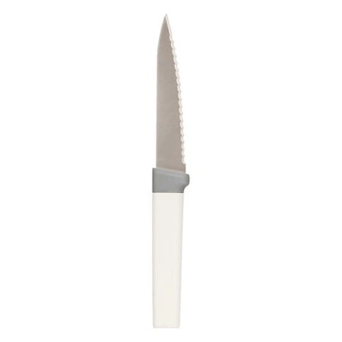 Zestaw 4 noży do steków 5five simply smart to praktyczne i stylowe rozwiązanie dla każdego, kto ceni wygodę oraz precyzję podczas serwowania mięsnych dań. Noże wykonane są z trwałej stali nierdzewnej, co zapewnia niezawodną ostrość i odporność na korozję. Dzięki antypoślizgowej rękojeści z tworzywa sztucznego, każdy nóż pewnie leży w dłoni, gwarantując bezpieczeństwo i komfort użytkowania zarówno podczas codziennych posiłków, jak i wyjątkowych okazji.