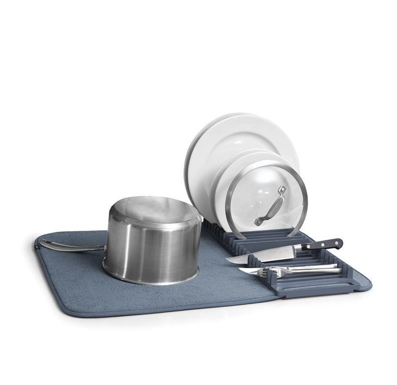 Stojak do suszenia naczyń jest niezbędnym elementem w kuchni. Często jednak spotykamy się z tym, że widoczne na blacie suszarki są duże, nieporęczne i kłują w oczy. Dodatkowo zagracają kuchnię i zajmują cenne miejsce, które jest ważne zwłaszcza w mniejszych, zamkniętych pomieszczeniach mieszkalnych. Aby zniwelować ten problem, często umyte naczynia układamy na rozłożonej na blacie ściereczce, którą chowamy razem z suchymi naczyniami.
