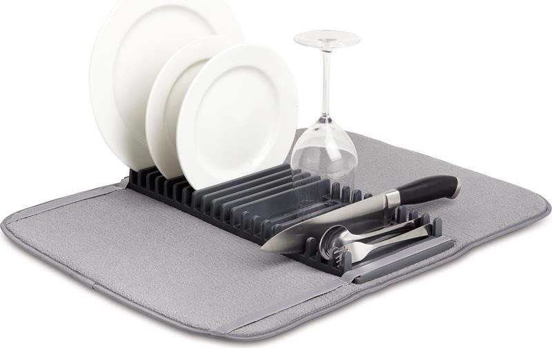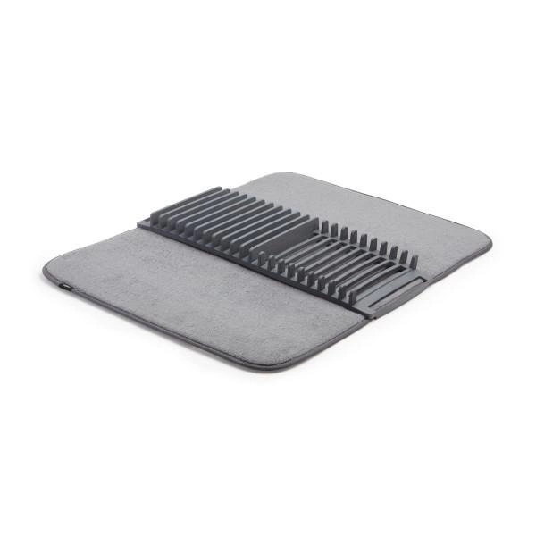 Mikrofibrowa mata do suszenia naczyń i ociekacz Udry marki Umbra to praktyczne rozwiązanie na blat kuchenny, które łączy funkcjonalność i nowoczesny design. Produkt o wymiarach 60x46 cm wykonano z wyjątkowo chłonnej tkaniny oraz wytrzymałego tworzywa, zapewniając optymalne warunki do suszenia i przechowywania naczyń. Jasnoszary kolor doskonale wpisuje się w współczesne aranżacje kuchni, a przemyślana konstrukcja sprawia, że mata ociekacz na naczynia jest nie tylko skuteczna, ale i wygodna w codziennym użytkowaniu.