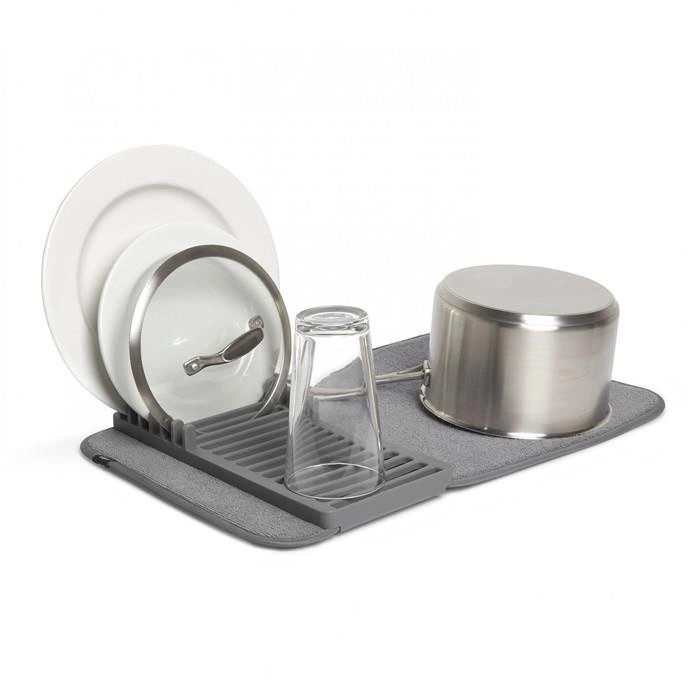 Nowoczesna mata ociekacz do naczyń Umbra Udry Mini to funkcjonalne rozwiązanie, które łączy wygodę maty do suszenia naczyń z praktycznym ociekaczem. Wykonana z trwałego tworzywa sztucznego w uniwersalnym, szarym kolorze, doskonale sprawdzi się na blacie kuchennym o wymiarach 51×33 cm. Składana konstrukcja pozwala na szybkie schowanie produktu po użyciu, zapewniając porządek nawet w niewielkiej kuchni.
