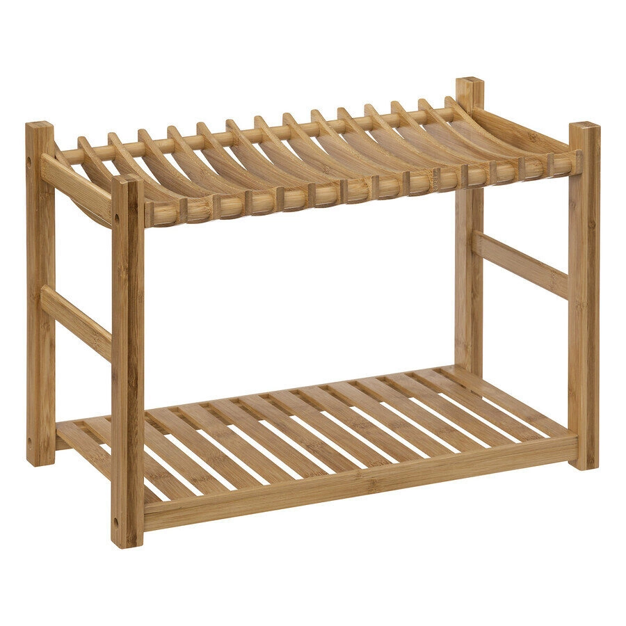 Ociekacz do naczyń bambusowy 5five simply smart to dwupoziomowa suszarka na naczynia, która łączy naturalny wygląd z funkcjonalnością. Wykonany z trwałego drewna bambusowego o wymiarach 53×24,7×33 cm, doskonale sprawdzi się na blacie w każdej kuchni. Wyposażony w wyjmowany pojemnik na sztućce oraz dwa poziomy suszenia, zapewnia wygodne i szybkie osuszanie zarówno talerzy, jak i drobnych akcesoriów kuchennych.