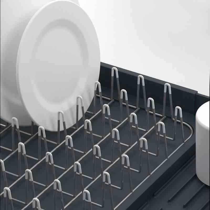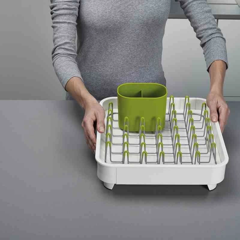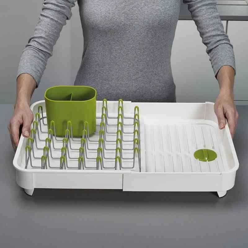 Joseph Joseph Extend to ociekacz do naczyń, który doskonale sprawdzi się w nowoczesnych, minimalistycznych wnętrzach. Stonowana kolorystyka i elegancka forma sprawiają, że suszarka na naczynia nie tylko pełni funkcję użytkową, ale także estetycznie dopełnia wystrój kuchni. Składana konstrukcja pozwala na łatwe powiększenie powierzchni suszenia w razie potrzeby, a po złożeniu ociekacz zajmuje niewiele miejsca na blacie.