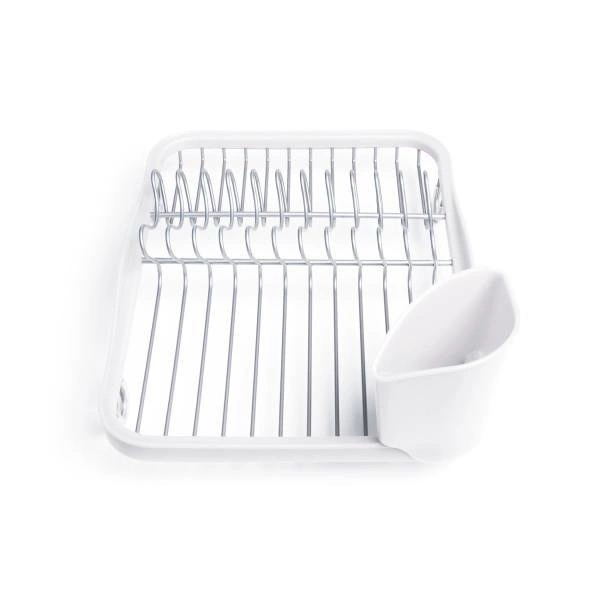 Ociekacz na talerze i sztućce Sinkin wyróżnia się przemyślanym układem przegródek, które ułatwiają segregację naczyń. Specjalnie wydzielone miejsce na sztućce zapewnia im odpowiednią wentylację i szybkie schnięcie, dzięki czemu zawsze są gotowe do użycia. Solidny, metalowy stelaż pokryty białą powłoką nadaje suszarce do naczyń elegancki wygląd, który wpasuje się w każdą aranżację kuchenną.