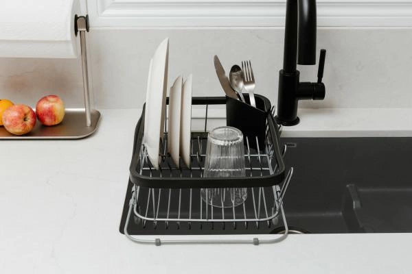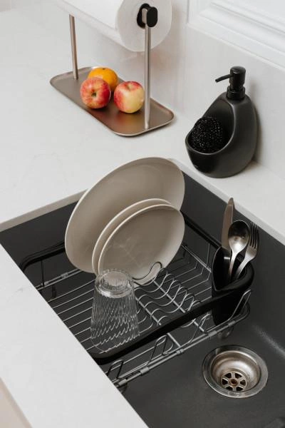 Metalowa konstrukcja ociekacza pokryta została powłoką zabezpieczającą przed korozją, co gwarantuje jego wytrzymałość nawet przy codziennym kontakcie z wodą. Czarny kolor nadaje mu uniwersalnego, nowoczesnego charakteru, który wkomponuje się zarówno w klasyczne, jak i nowoczesne kuchnie. Funkcjonalny wkład na sztućce oraz wyprofilowane miejsce na talerze i szklanki sprawiają, że suszarka do naczyń Umbra Sinkin jest nie tylko praktyczna, ale także estetyczna.