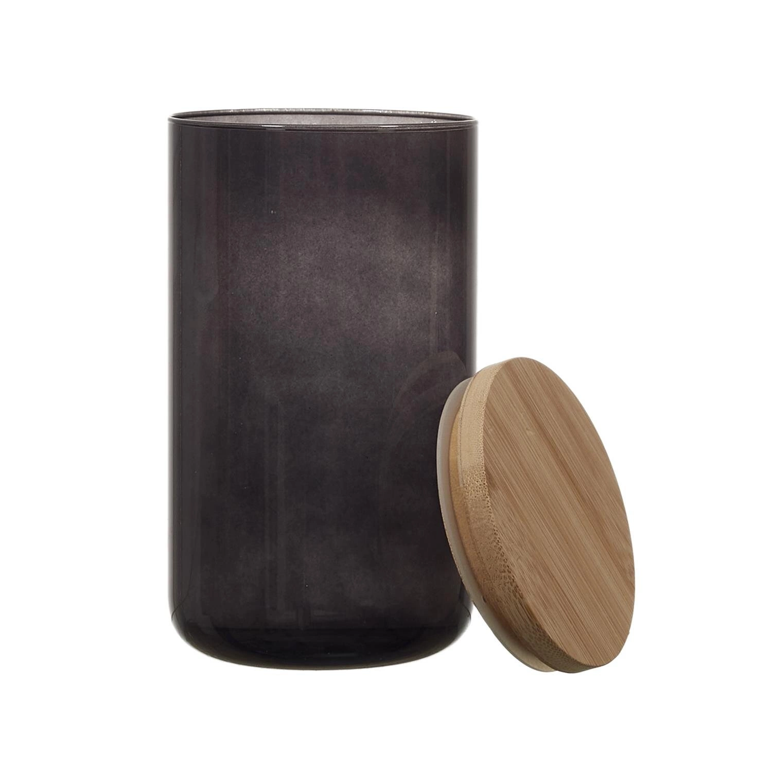 • Estetyczny design: Szklany pojemnik o eleganckim, cylindrycznym kształcie z bambusową pokrywką dodaje stylu każdej kuchni.