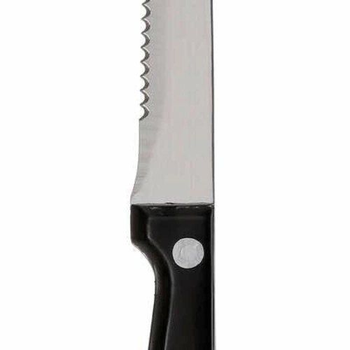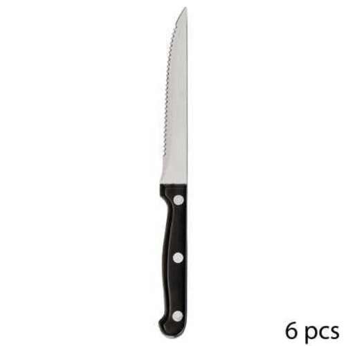 Zestaw noży do steków 5five simply smart to propozycja dla wszystkich miłośników soczystych steków i wykwintnych dań mięsnych. Komplet sześciu noży wykonanych z wysokiej jakości stali nierdzewnej oraz tworzywa w eleganckim czarnym kolorze gwarantuje precyzyjne krojenie każdego kawałka mięsa. Noże o długości 22 cm z wygodnymi, ergonomicznymi uchwytami zapewniają wygodę użytkowania zarówno podczas rodzinnego obiadu, jak i spotkań przy grillu.