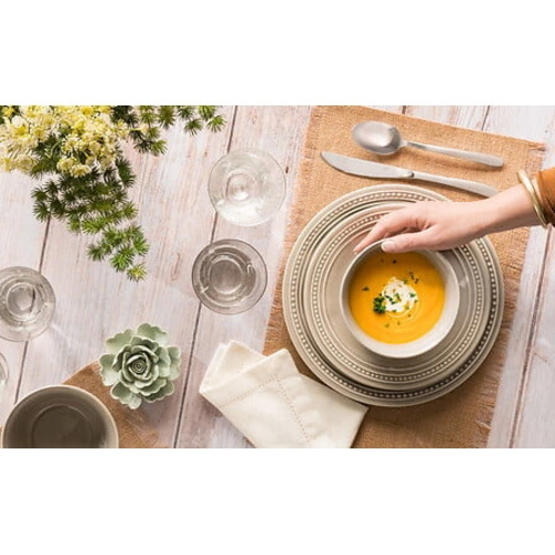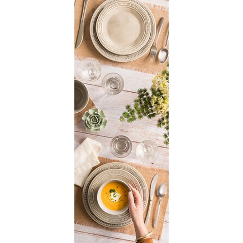 Matowe wykończenie w odcieniu srebra nadaje zestawowi subtelnej elegancji, która wpasuje się zarówno w klasyczne, jak i współczesne aranżacje jadalni. Proste, ergonomiczne kształty sztućców sprawiają, że każdy posiłek staje się przyjemnością. Zestaw obiadowy obejmuje noże, widelce, łyżki oraz łyżeczki, dzięki czemu świetnie sprawdzi się podczas codziennych obiadów, rodzinnych spotkań czy okazjonalnych przyjęć.