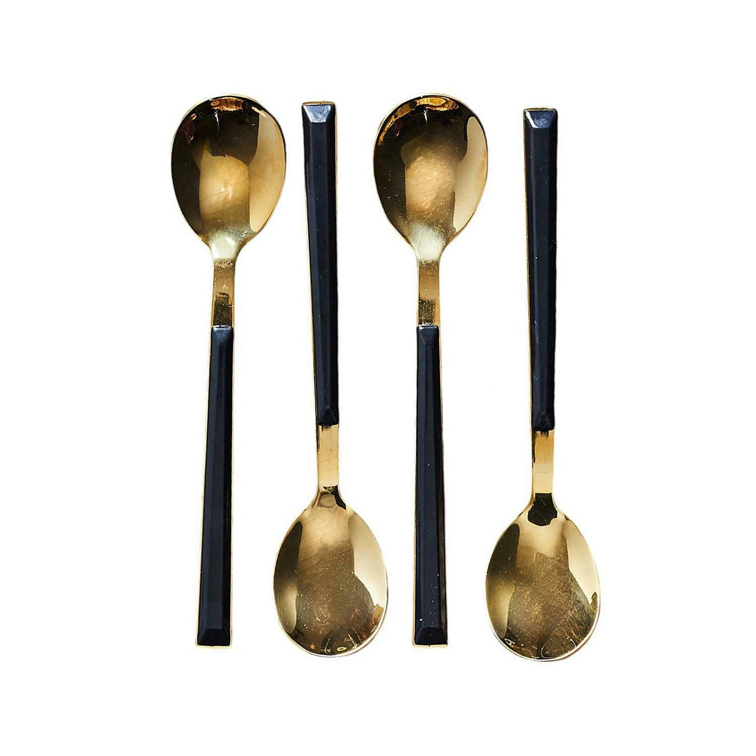 Łyżeczki deserowe Charlotte marki Intesi to elegancki zestaw przeznaczony dla czterech osób, wykonany z trwałej stali nierdzewnej i wykończony w wyjątkowym połączeniu złota oraz czerni. Każda łyżeczka o szerokości 15,5 cm stanowi stylowy akcent na stole, doskonale sprawdzając się podczas serwowania deserów, kaw czy herbat. Zestaw ten łączy w sobie nowoczesny design i praktyczność – można je myć w zmywarce, co ułatwia codzienne użytkowanie.