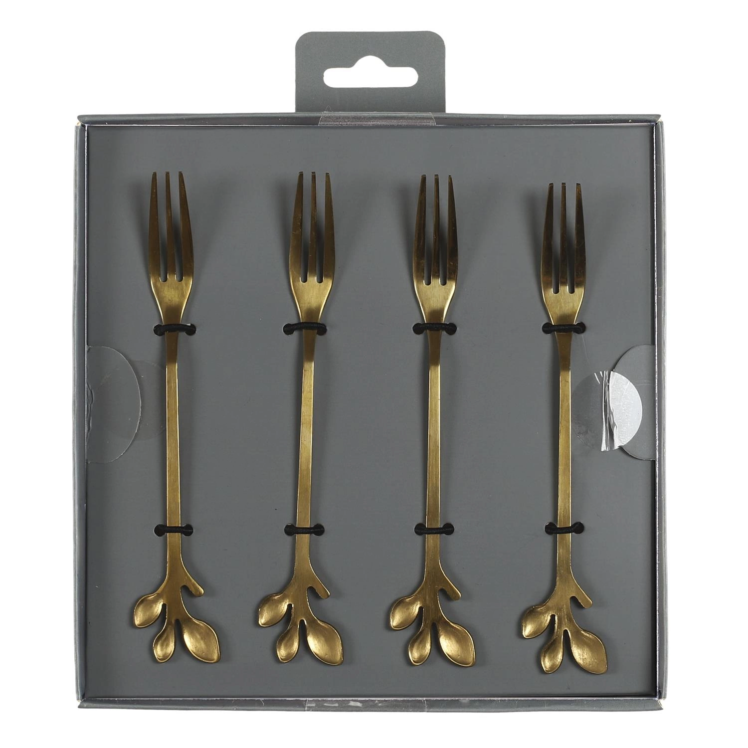 Zestaw 4 złotych widelczyków do deserów Intesi to elegancka propozycja do kawiarni, jadalni oraz domowego salonu. Widelczyki wykonane zostały ze stali nierdzewnej, łącząc trwałość z efektownym, połyskującym wykończeniem w kolorze złota. Każdy element zestawu wyróżnia się subtelną formą i długością 12,2 cm, idealną do serwowania ciast, tortów czy owoców.