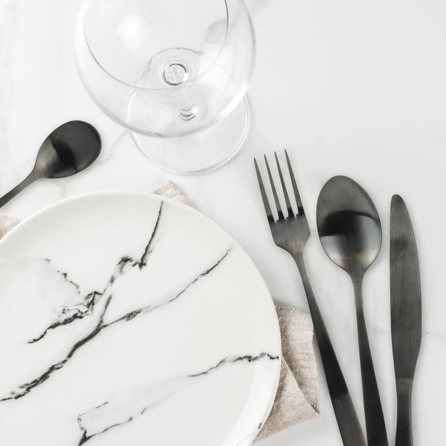 Dzięki wykorzystaniu stali nierdzewnej zestaw Charbon zachowuje swój elegancki wygląd nawet przy intensywnym użytkowaniu. Sztućce są odporne na zarysowania, nie odbarwiają się i nie tracą blasku, co pozwala cieszyć się nimi przez długi czas. Możliwość mycia w zmywarce to praktyczne udogodnienie w codziennym użytkowaniu, które doceni każda nowoczesna rodzina. Komplet obejmuje wszystkie niezbędne elementy do serwowania obiadu dla czterech osób.
