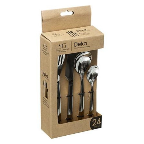 Zestaw składa się z 24 elementów, co pozwala wygodnie zaserwować posiłek aż sześciu osobom. W skład kompletu wchodzą noże, widelce, łyżki oraz łyżeczki – wszystko, czego potrzebujesz do codziennych i wyjątkowych okazji. Całość utrzymana w jednolitej, srebrnej tonacji doskonale uzupełni Twoją zastawę stołową.