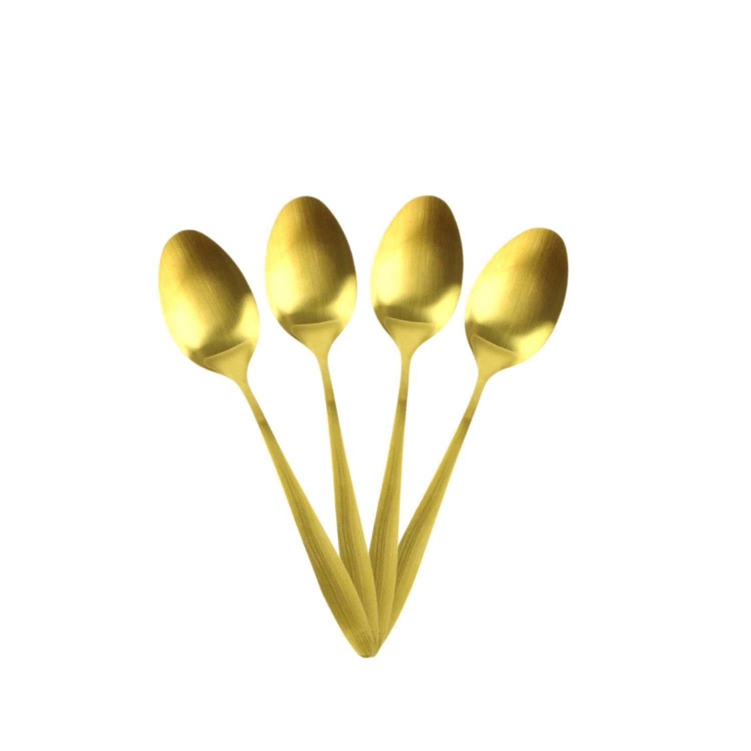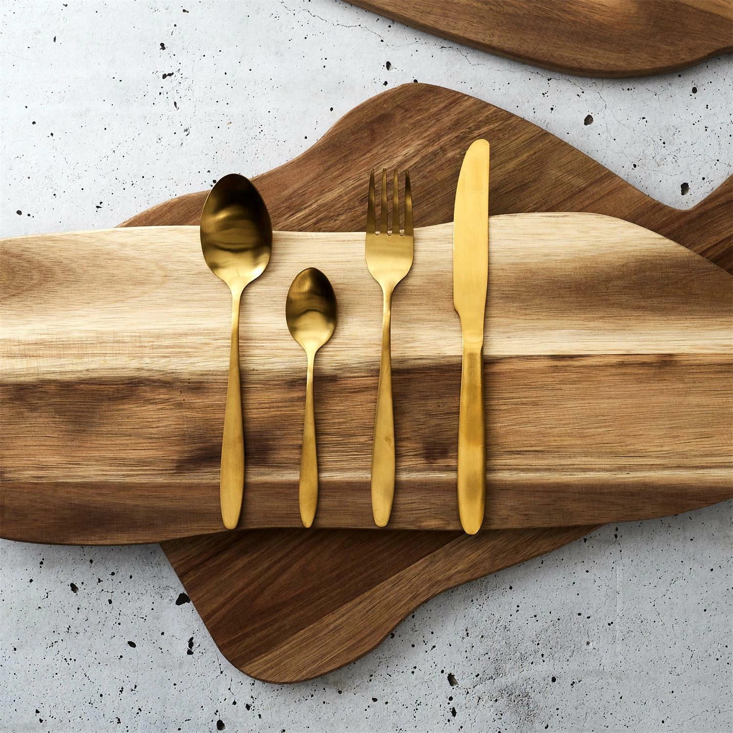 Zestaw sztućców złote Charbon Intesi to propozycja dla osób ceniących nowoczesny, a zarazem ponadczasowy design. Proste linie, delikatnie zaokrąglone kształty i efektowny odcień złota tworzą spójną całość, która zachwyci gości i podkreśli wyjątkowość każdej aranżacji stołu. To doskonały wybór zarówno do codziennych obiadów, jak i świątecznych przyjęć.
