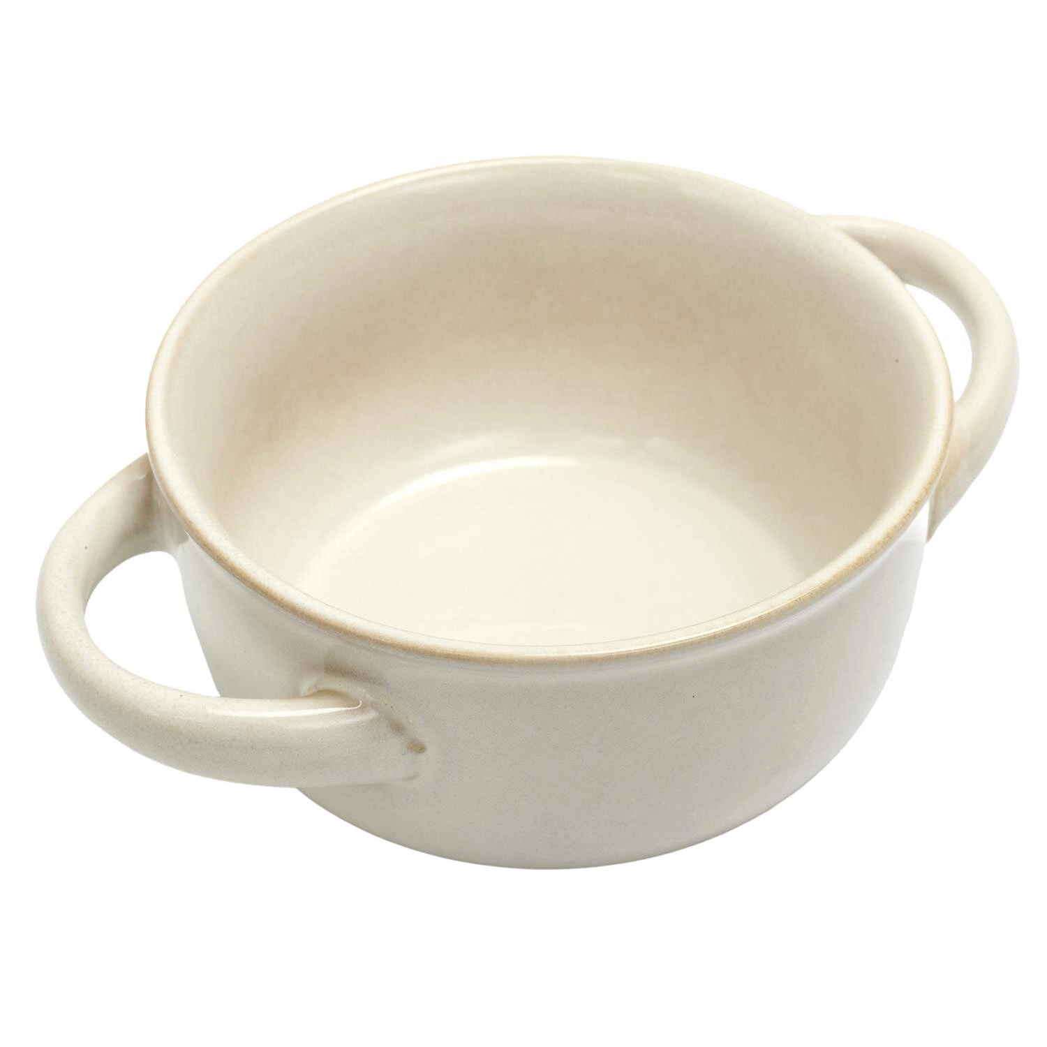 Bulionówka Temps marki Intesi to okrągła, biała miska do zupy o pojemności 600 ml, wykonana z wysokogatunkowej ceramiki. Dzięki dwóm poręcznym uchwytom, bezpiecznie i wygodnie podasz gorący bulion, krem czy aromatyczną zupę w domowej jadalni lub kuchni. Przemyślany design i ponadczasowa biel sprawiają, że naczynie harmonijnie wpisuje się w klasyczny styl stołu, jednocześnie ułatwiając codzienne użytkowanie.