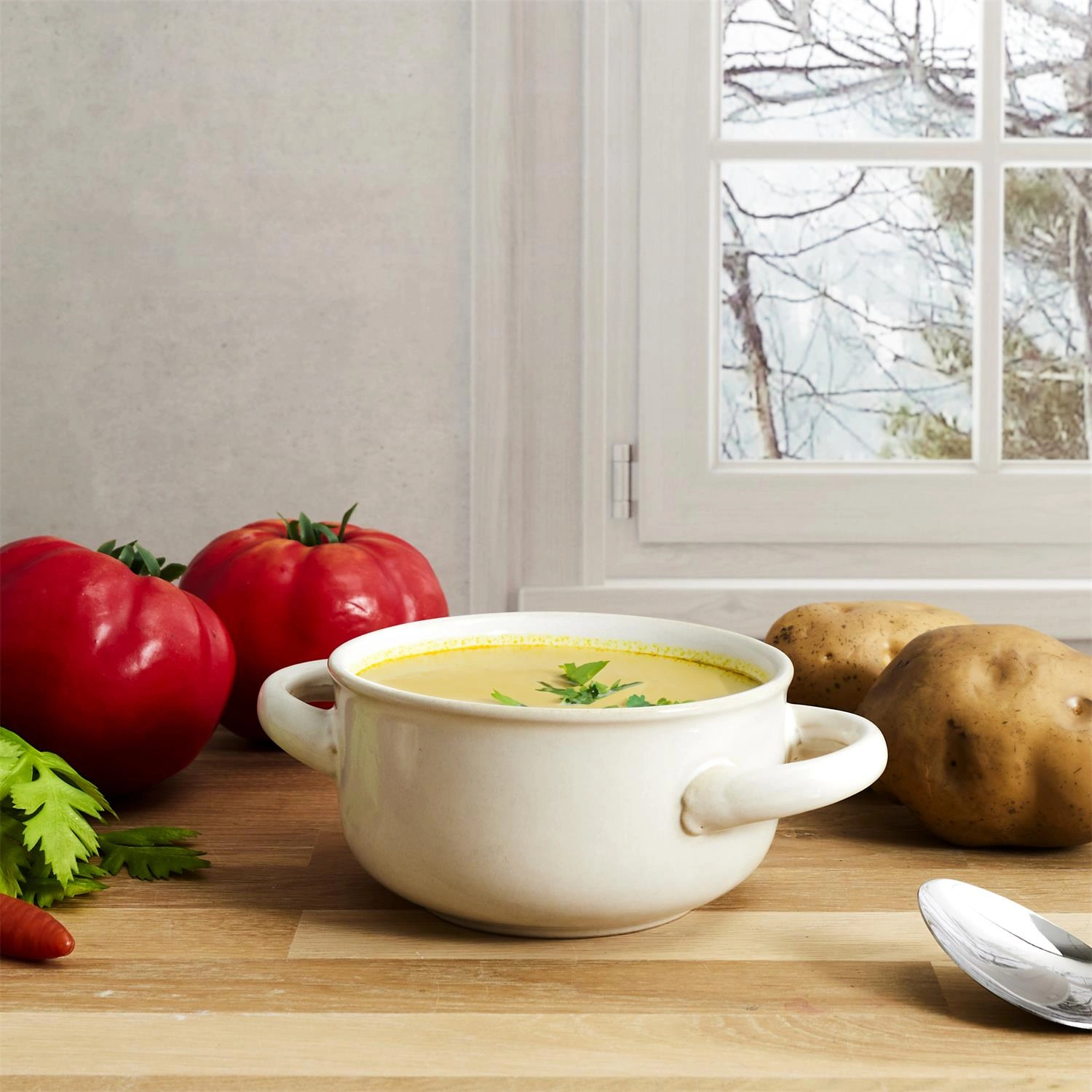 Miska do zupy z serii Temps została zaprojektowana z myślą o wygodzie — zarówno podczas rodzinnego obiadu, jak i eleganckiej kolacji. Jej pojemność 600 ml idealnie sprawdzi się przy serwowaniu porcji bulionu, kremu warzywnego czy rozgrzewającej zupy gulaszowej. Okrągły kształt oraz dwa praktyczne uchwyty zapewniają pewny chwyt nawet wtedy, gdy danie jest gorące. To nie tylko miska na zupę, ale również doskonała bulionówka do podania makaronów w sosie, leczo lub śniadaniowej owsianki.