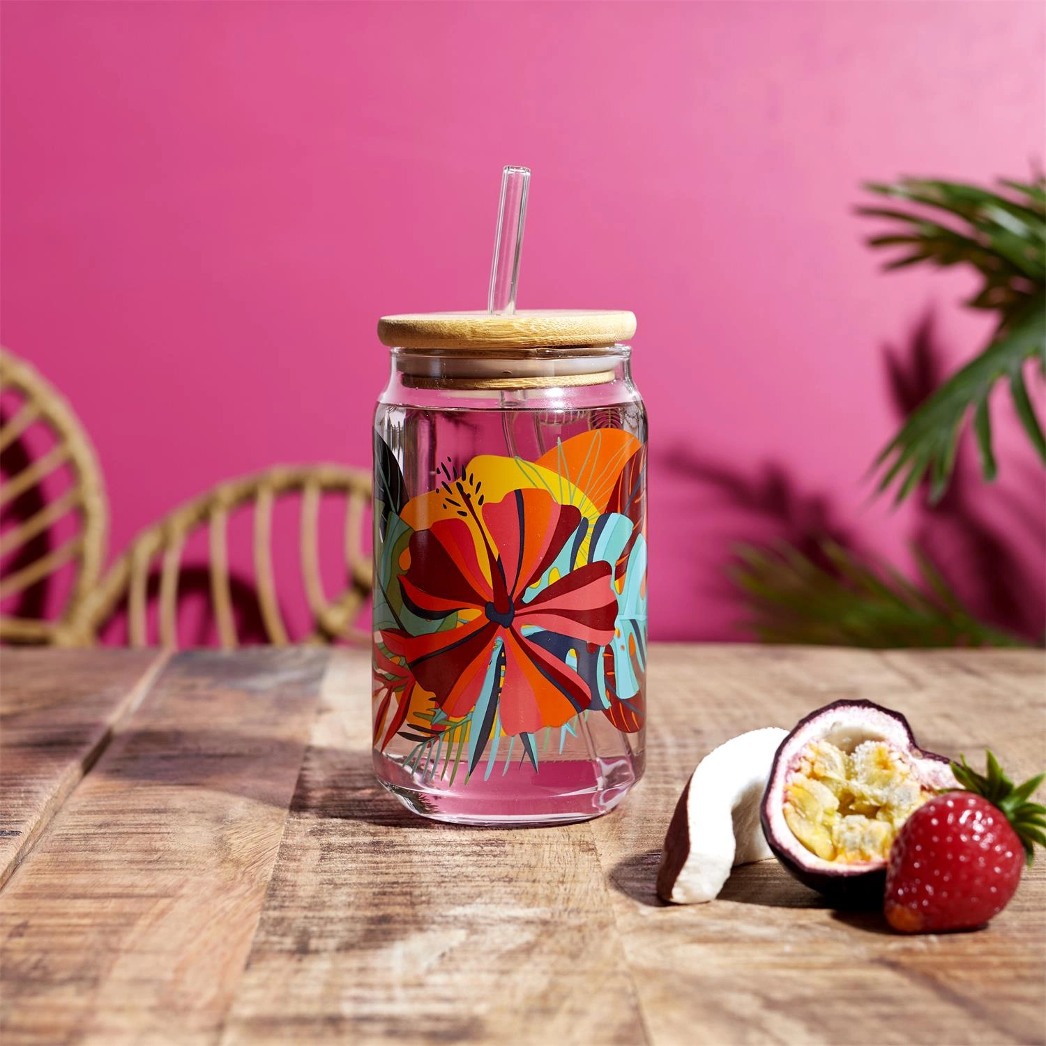 Szklanka Exotic Paradise marki Intesi to kolorowa, wielofunkcyjna szklanka do napojów o pojemności 450 ml, wyposażona w bambusową pokrywkę i praktyczną słomkę. Wykonana ze szkła w połączeniu z naturalnym drewnem bambusowym i silikonem, zapewnia stylowe i wygodne serwowanie ulubionych napojów – od lemoniady, przez koktajle, po orzeźwiającą wodę. Szklanka o wysokości 13,5 cm i szerokości 7,7 cm wyróżnia się nie tylko designem, ale także funkcjonalnością, idealną na letnie spotkania, pikniki czy relaks na tarasie.