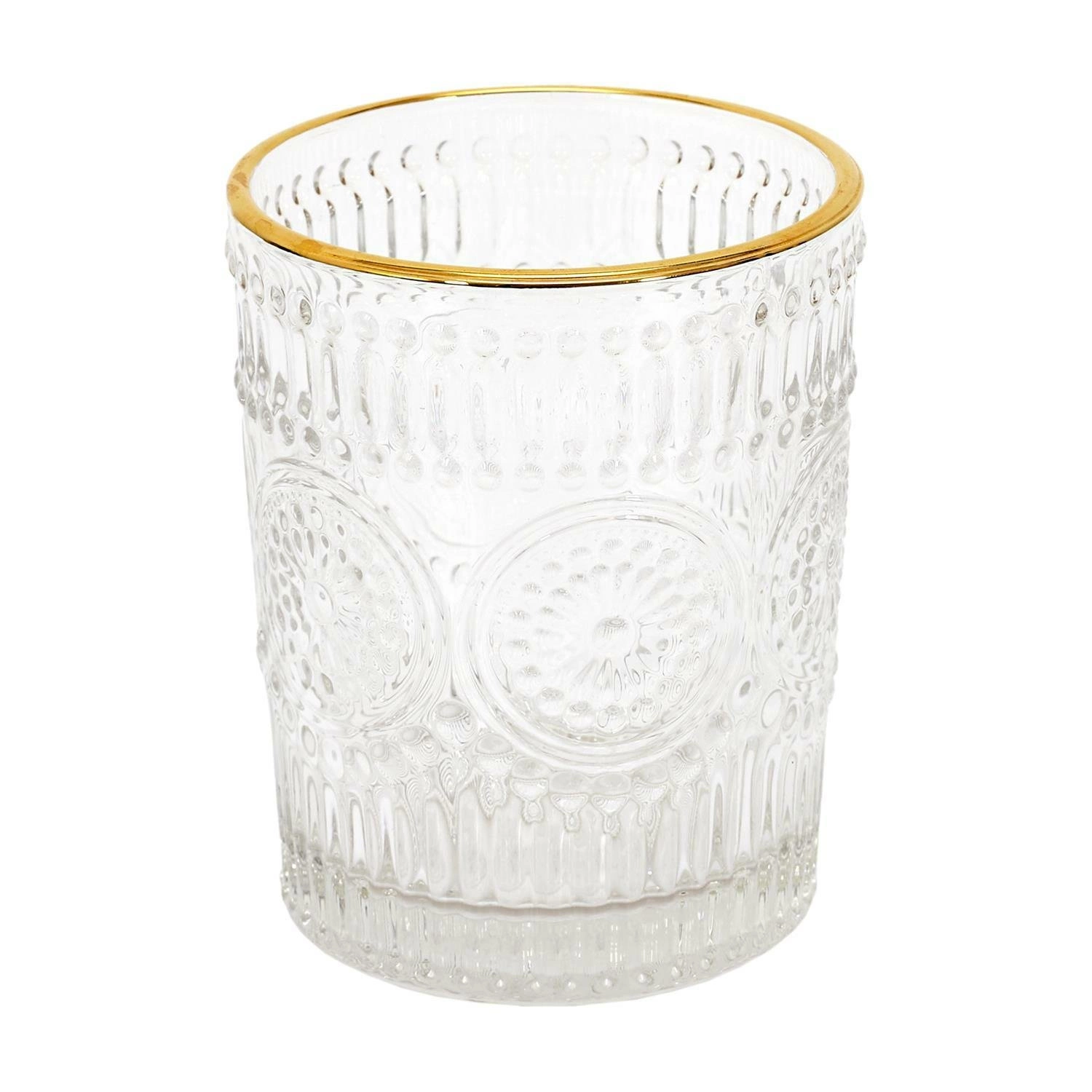 Urok i subtelność to słowa opisujące SZKLANKI LISERE ze złotą obwódką. Ich delikatna forma o pojemności 250 ml będzie nie tylko idealnym naczyniem na sok, ale również piękną ozdobą nakrycia stołu. Transparentna szklanka z modnym wzorem w stylu modern glamour sprawdzi się podczas uroczystości rodzinnych jak i na co dzień. Zachwyci wszystkich wielbicieli eleganckiego stylu, który nawiązuje do klasyki designu. Dekoracyjna szklanka może być też świetnym prezentem z okazji świąt. Aby zachować szklankę, w jak najlepszym stanie nie należy myć jej w zmywarce i używać w kuchence mikrofalowej.