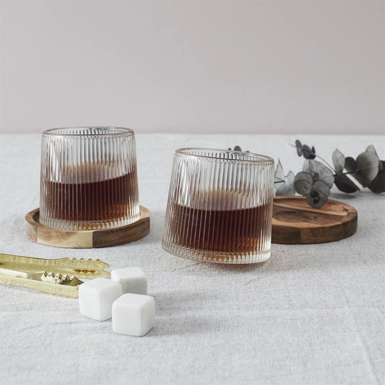 Zestaw 2 szklanek do whisky Intesi z podkładkami z drewna akacjowego to propozycja dla tych, którzy cenią komfort serwowania i niebanalne detale. Postaw na stylowe akcesoria do whisky, które podkreślą charakter Twoich spotkań i staną się ozdobą każdego stołu.
