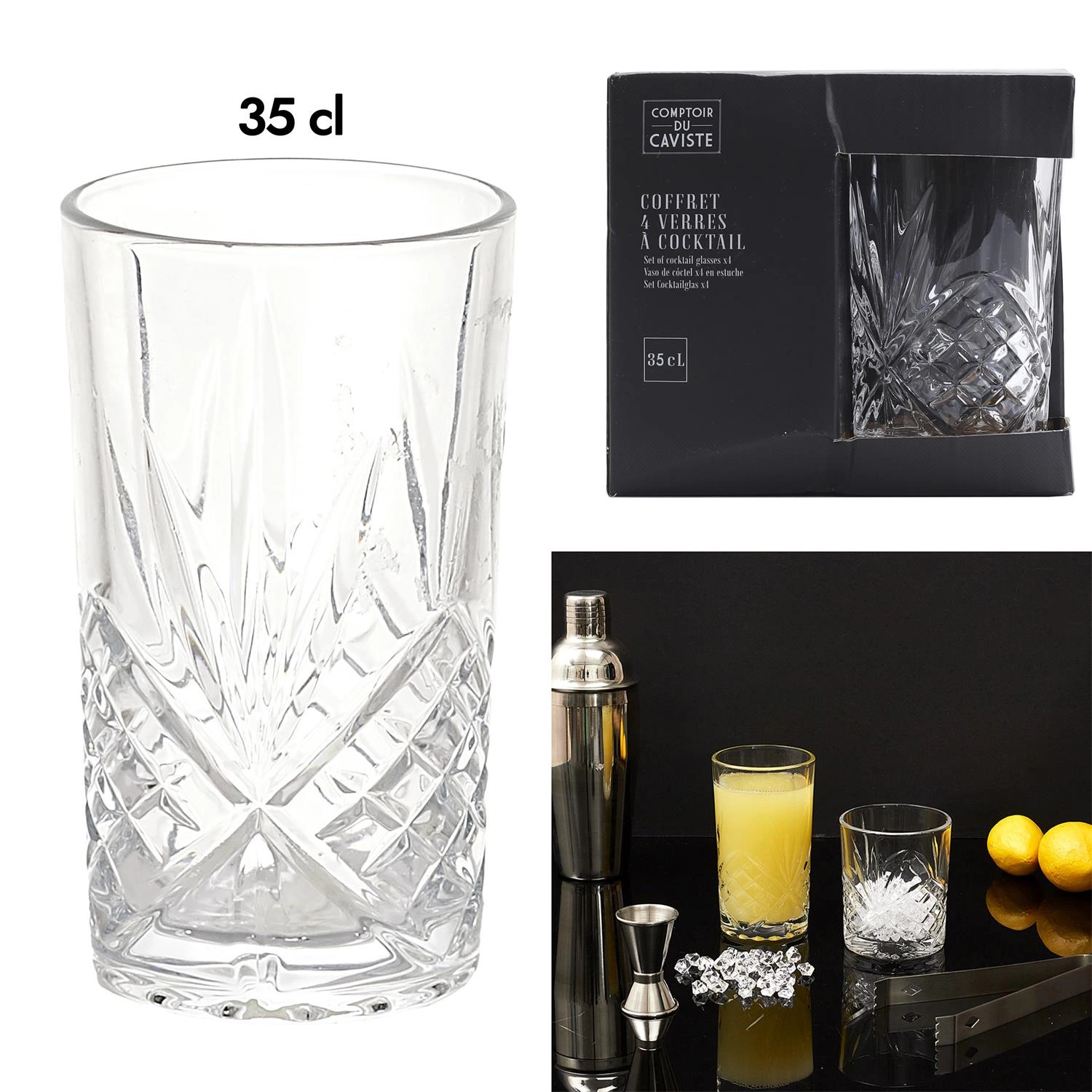 Zestaw 4 szklanek Bohemia marki Intesi to połączenie klasycznego stylu retro z nowoczesną funkcjonalnością. Każda szklanka o pojemności 350 ml została wykonana z transparentnego, ozdobnego szkła, które przyciąga wzrok subtelnym zdobieniem i elegancką formą. Wysokość 13,5 cm i okrągły kształt sprawiają, że szklanki doskonale leżą w dłoni i świetnie prezentują się na stole – zarówno podczas codziennych posiłków, jak i wyjątkowych okazji.