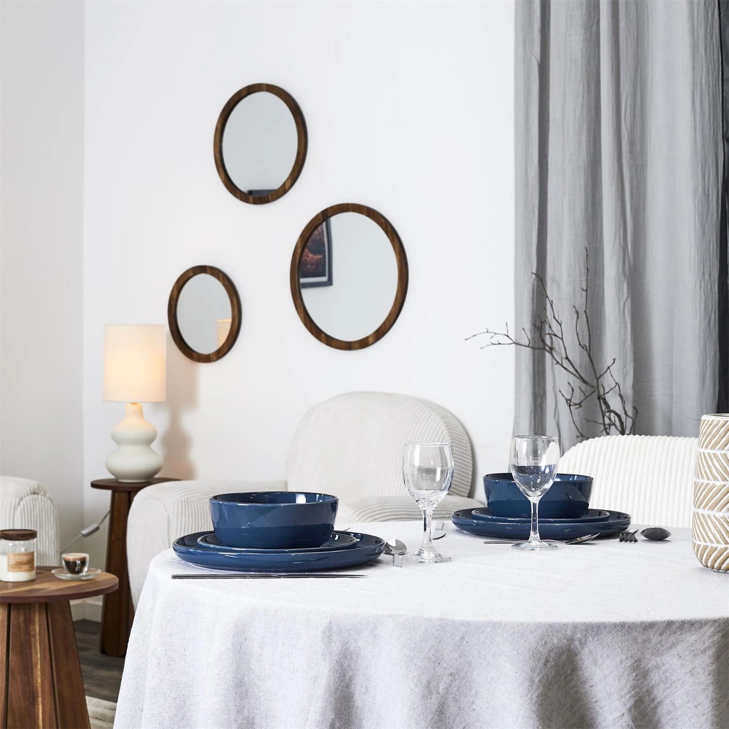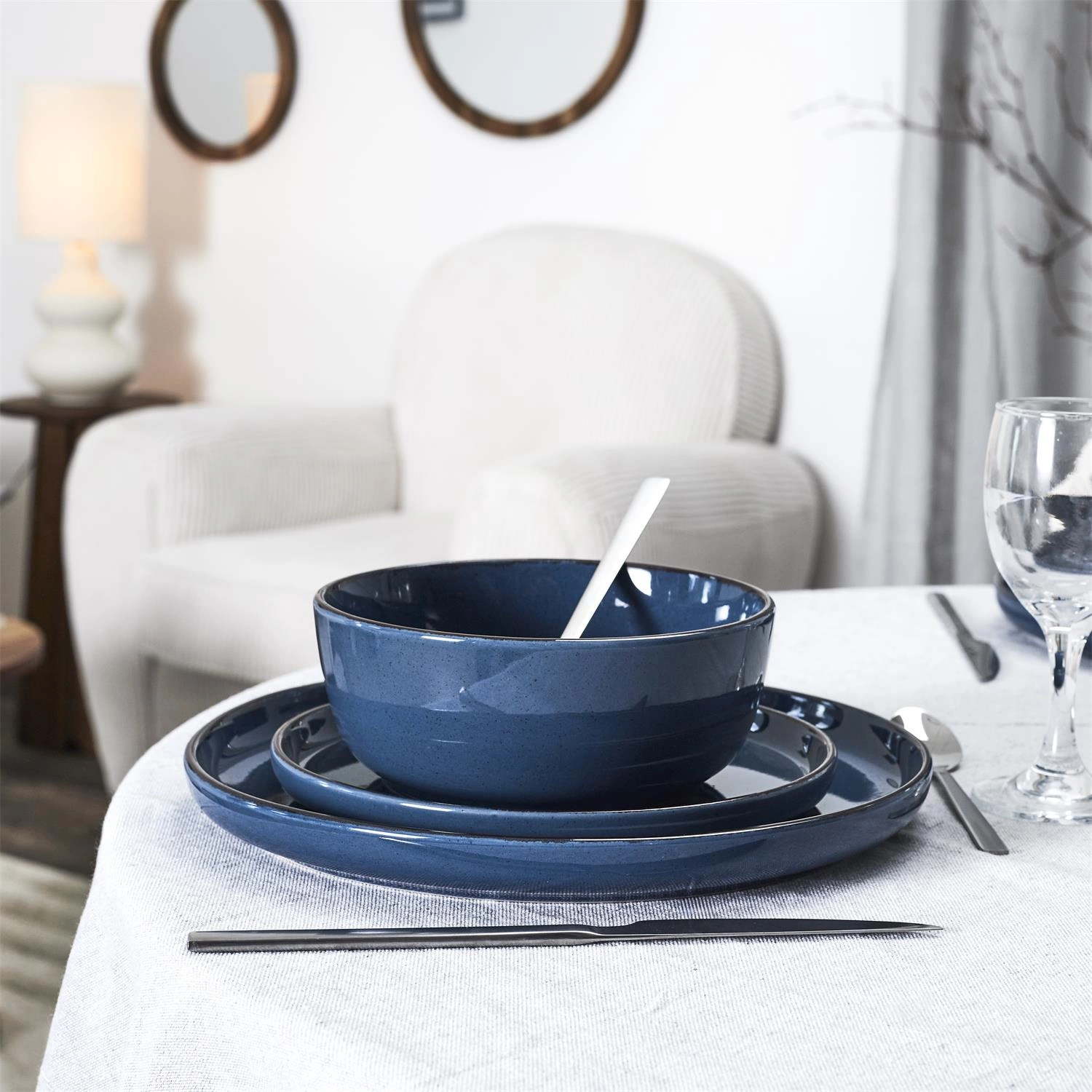 Zestaw obiadowy Temp marki Intesi to klasyczna zastawa stołowa na 4 osoby, wykonana z ceramiki i utrzymana w głębokim, niebieskim kolorze. Komplet zawiera talerze obiadowe, talerze deserowe oraz miseczki, wszystkie o nieregularnych kształtach, które podkreślają unikatowy charakter kolekcji. Zestaw przeznaczony jest do codziennego użytku w kuchni, jadalni czy restauracji, a możliwość mycia w zmywarce znacząco ułatwia utrzymanie go w czystości.