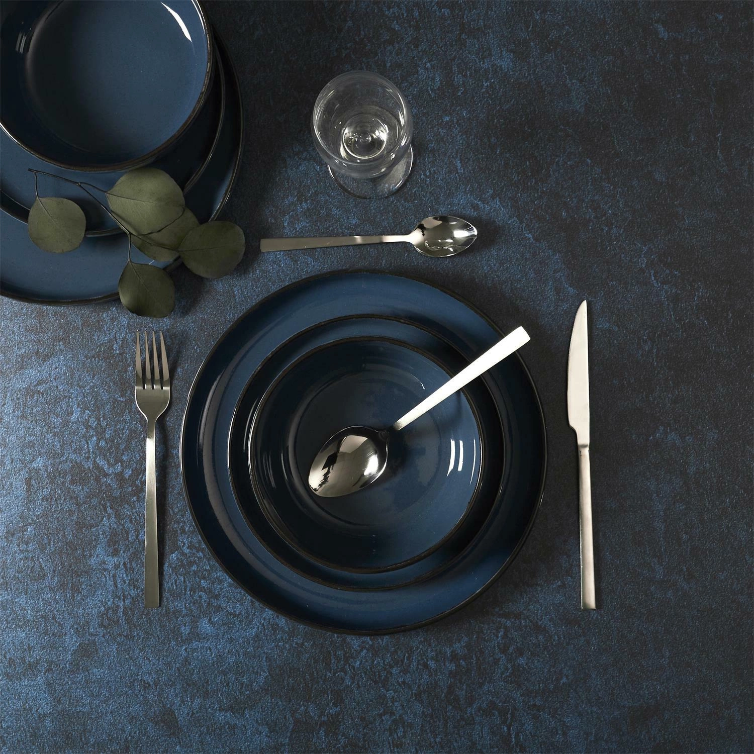 Zestaw talerzy Temp marki Intesi to propozycja dla miłośników klasycznych, lecz niebanalnych rozwiązań. Nieregularna linia naczyń i głęboki niebieski kolor wprowadzają wyjątkowy klimat do każdego wnętrza. Komplet sprawdzi się zarówno podczas codziennych posiłków, jak i odświętnych okazji, zapewniając wygodę użytkowania i efektowną prezentację potraw. Wybierając ten serwis obiadowy, zyskujesz nie tylko funkcjonalność, ale także wyjątkową estetykę, która podkreśli charakter Twojego stołu.