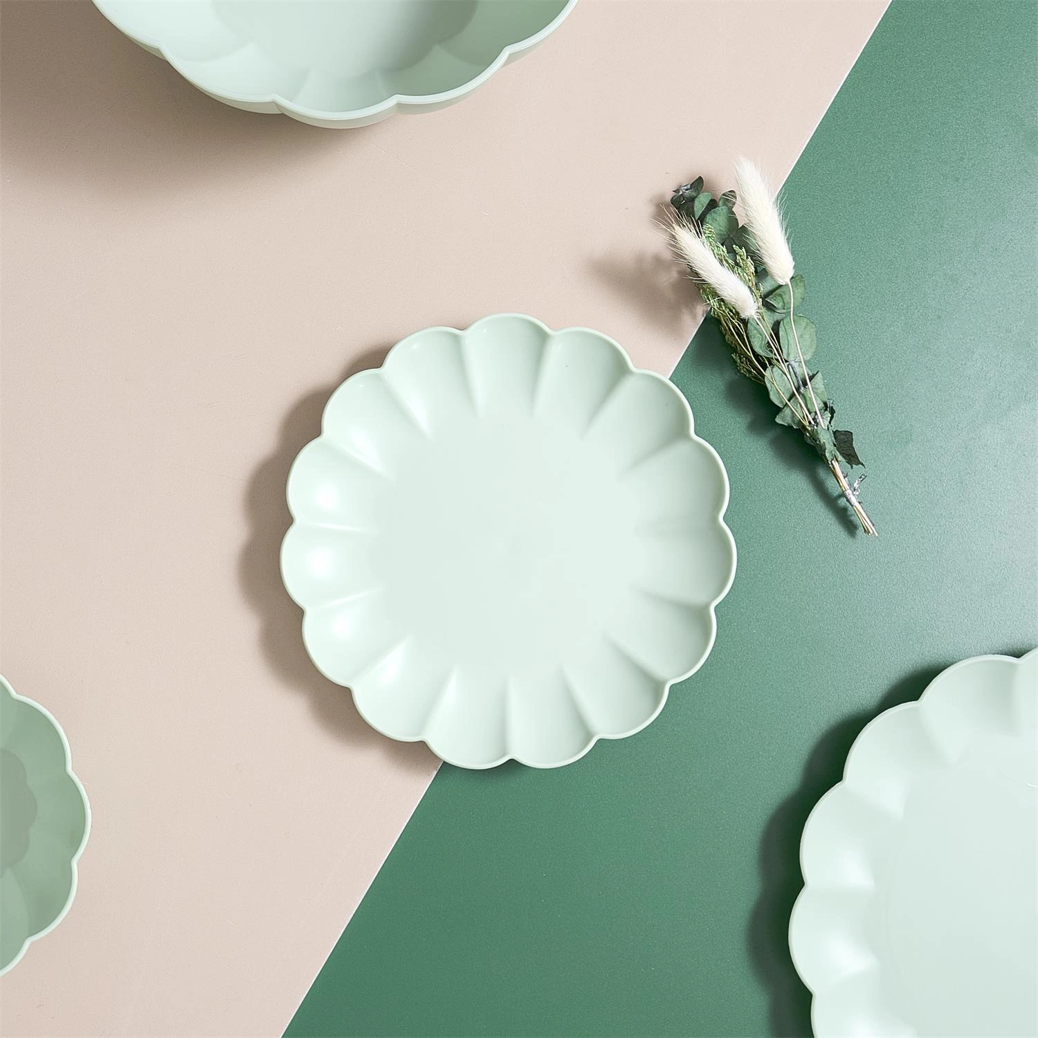 Jasnozielony talerzyk deserowy Iris łatwo odmieni atmosferę podczas każdego posiłku. Okrągły kształt i subtelny kolor dodają energii i lekkości aranżacjom, a jednocześnie pozwalają na harmonijne łączenie z innymi elementami zastawy. To doskonały talerz deserowy do ciast, tortów, owocowych przekąsek czy serów – podkreśli apetyczny wygląd potraw i sprawdzi się zarówno w kuchni, jak i w jadalni.