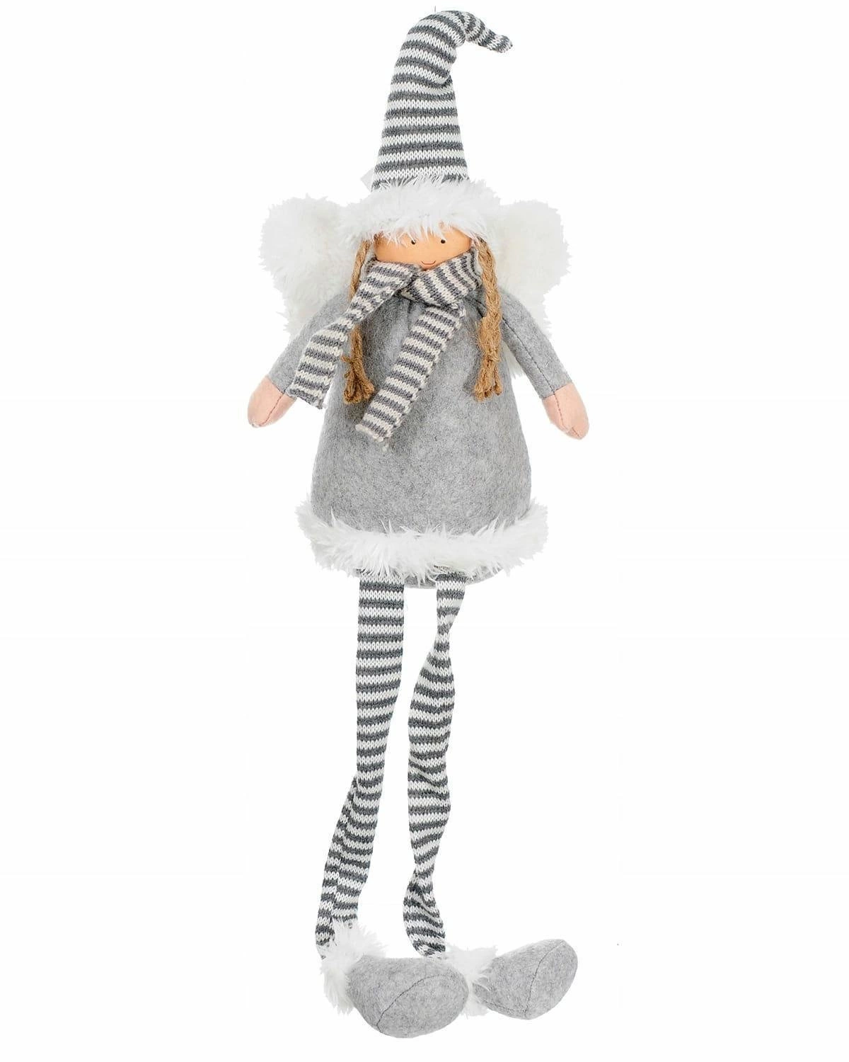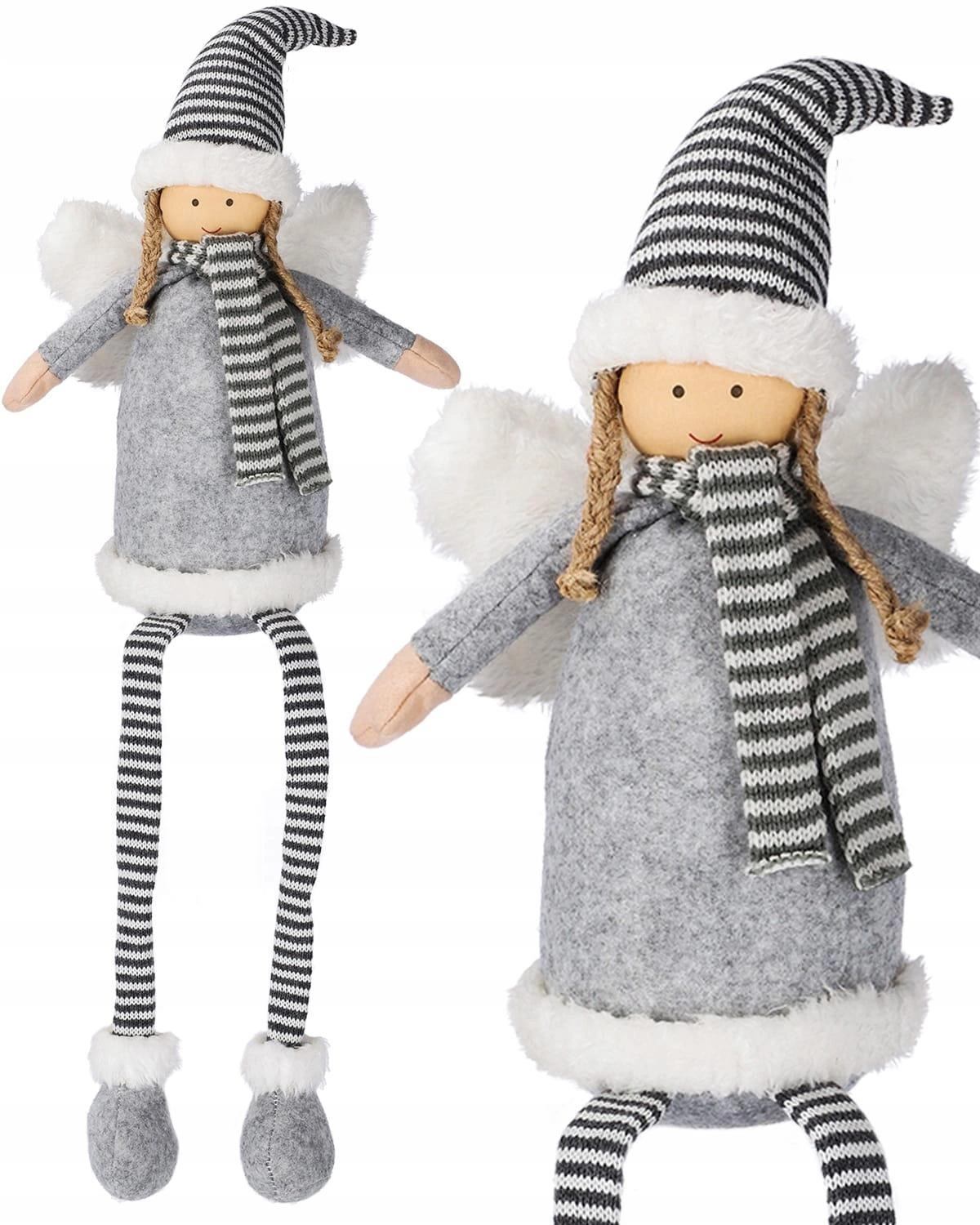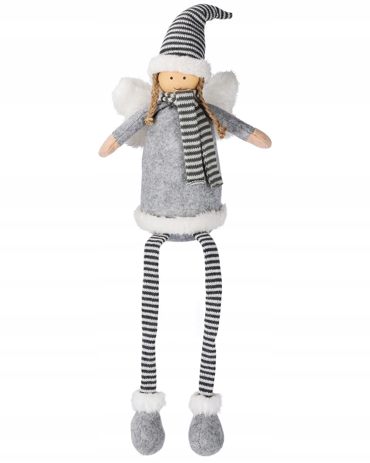 Aniołek jest dość wysoki, ma 40 cm długości, a jego nogi 34 cm. Posiada prążkowaną czapkę, skrzydełka z futerka oraz warkoczyki ze sznurka. Stabilność zapewniają mu odpowiednie dociążenie.