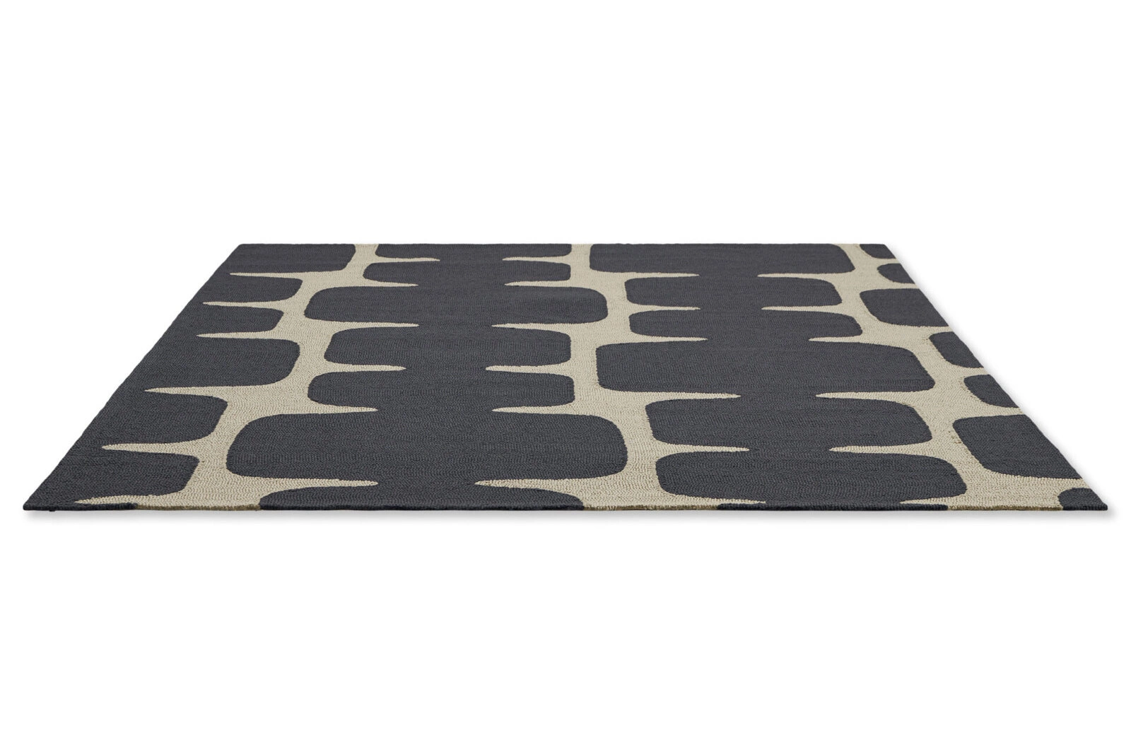 Dywan zewnętrzny Lohko Liquorice marki Carpets & More to nowoczesny, prostokątny dywan o wymiarach 140x200 cm, wykonany z wytrzymałego włókna syntetycznego. Charakteryzuje się geometrycznym wzorem w odcieniach szarości oraz wysoką odpornością na czynniki zewnętrzne. Idealny do wykorzystania na tarasie, balkonie lub w ogrodzie – pozwala zaaranżować przestrzeń na świeżym powietrzu z nutą skandynawskiej elegancji.