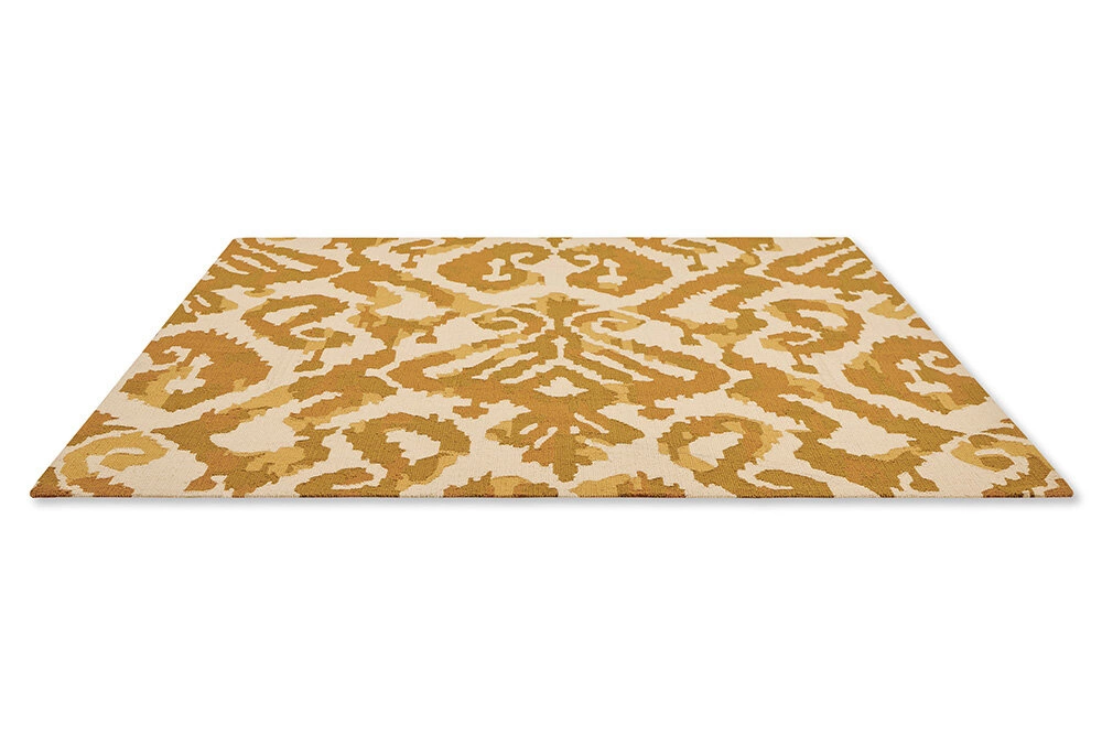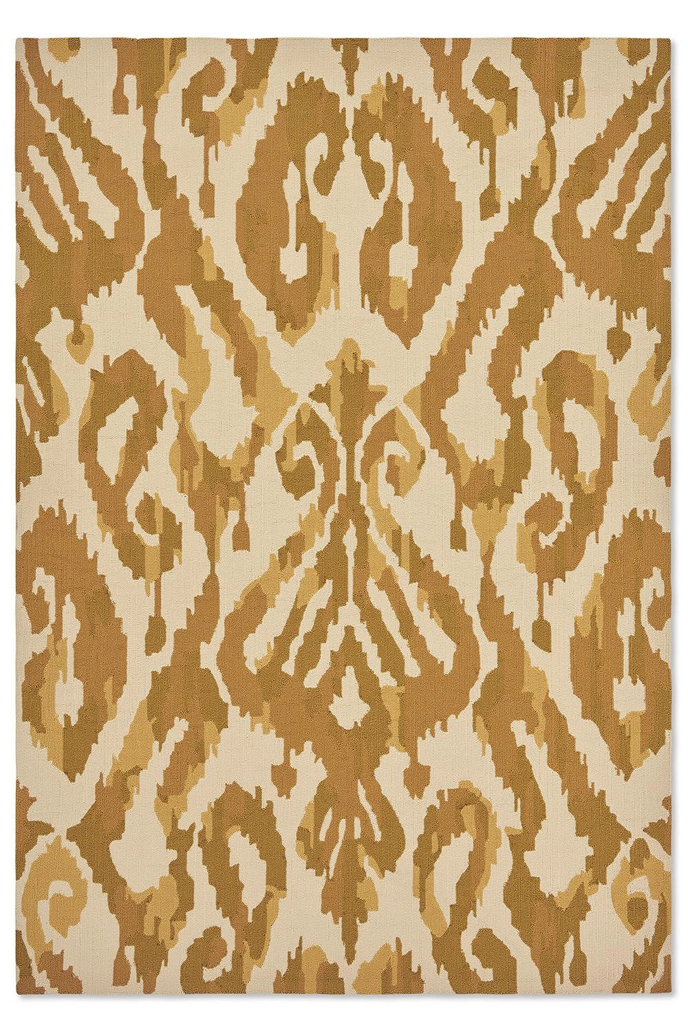Dywan zewnętrzny Kasuri 250x350 cm marki CARPETS & MORE Magdalena Świerlikowska to wyjątkowe połączenie funkcjonalności, trwałości i niepowtarzalnego stylu vintage. Prostokątny kształt, ornamentalny wzór oraz wielokolorowa, jasnobrązowa tonacja sprawiają, że ten łatwoczyszczący dywan doskonale podkreśli charakter każdego tarasu, ogrodu czy balkonu. Dzięki niewielkiej wysokości runa (1 cm) i wykonaniu z wytrzymałych włókien, sprawdzi się idealnie na zewnątrz przez cały sezon.