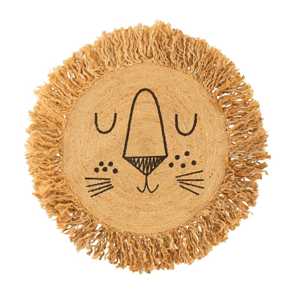 Dywanik dziecięcy "Lew" to uroczy dodatek, który wprowadzi do pokoju malucha nie tylko styl, ale i radość. Okrągły kształt dywanika oraz frędzle na krawędziach doskonale imitują futro zwierzęcia, co sprawia, że dywanik jest nie tylko estetyczny, ale także zachęcający do zabawy. Wykonany z juty roślinnej, dywanik jest przyjazny dla środowiska, a jego naturalny wygląd znakomicie wpisuje się w nowoczesne oraz ekologiczne wnętrza.