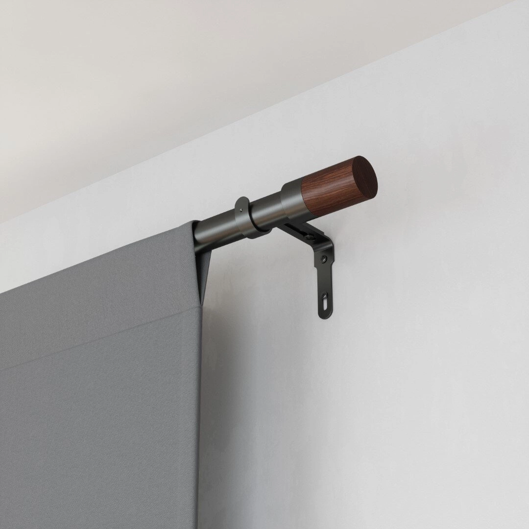 Prezentowany karnisz Blok to połączenie nowoczesności z nutą rustykalnego uroku. Cechuje go nie tylko atrakcyjny design, ale także wysoka funkcjonalność. Jego regulowana długość, od 183 do 365 cm, pozwala na dopasowanie go do okien o różnych wymiarach. Wykończony w matowym, czarnym kolorze z elementami z drewna kauczukowego, wprowadzi do Twojego wnętrza elegancki, ponadczasowy charakter.