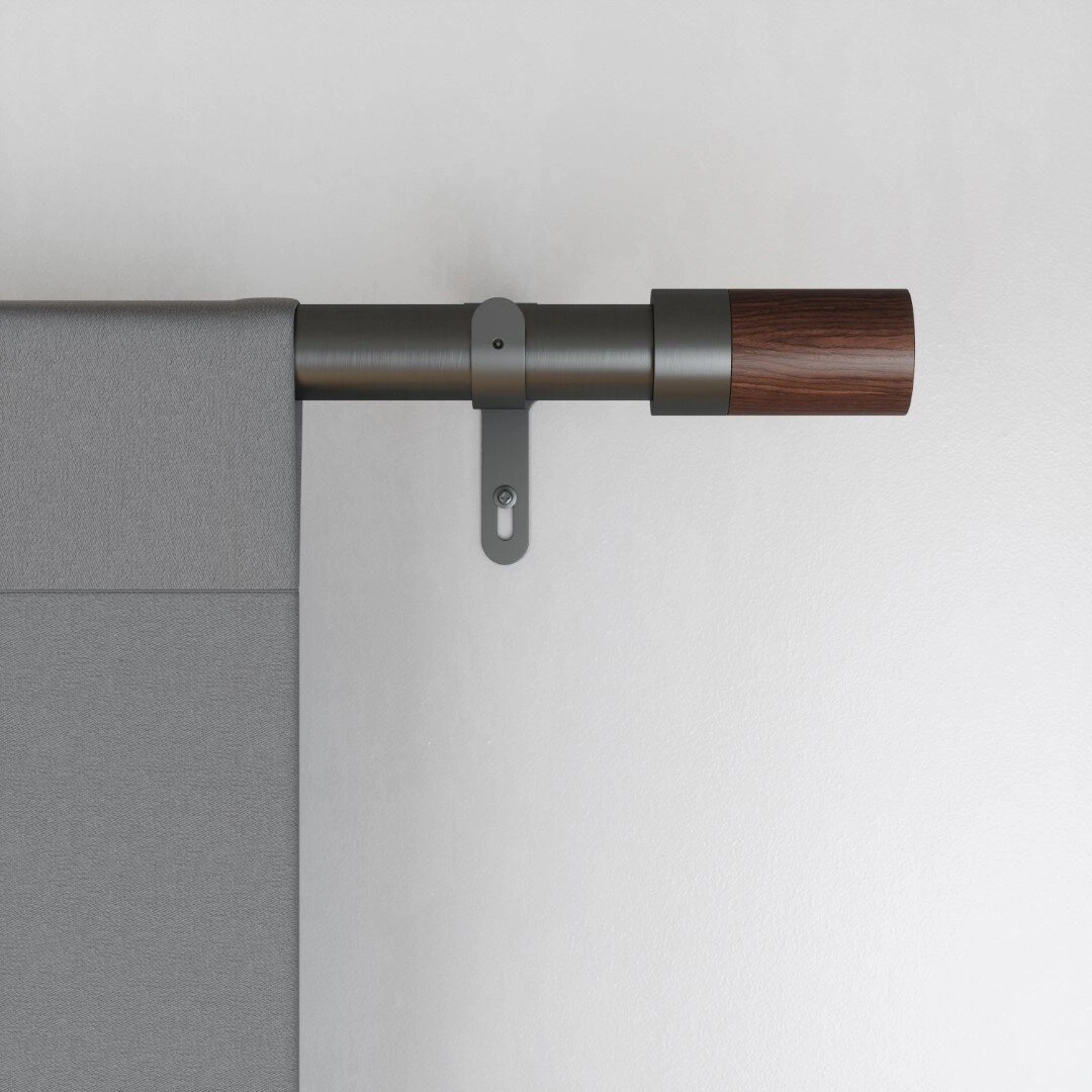 Prezentowany karnisz Blok to połączenie nowoczesności z nutą rustykalnego uroku. Cechuje go nie tylko atrakcyjny design, ale także wysoka funkcjonalność. Jego regulowana długość, od 91 do 183 cm, pozwala na dopasowanie go do okien o różnych wymiarach. Wykończony w matowym, czarnym kolorze z elementami z drewna kauczukowego, wprowadzi do Twojego wnętrza elegancki, ponadczasowy charakter.